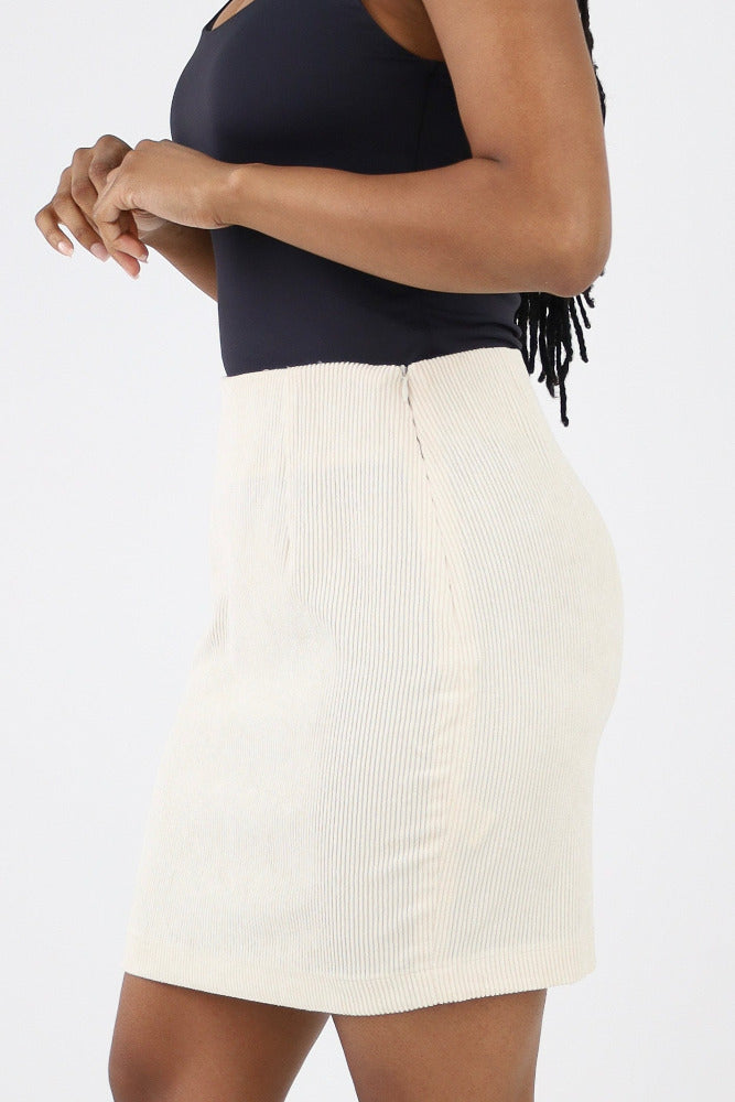 Solid Corduroy Mini Skirt -Ivory