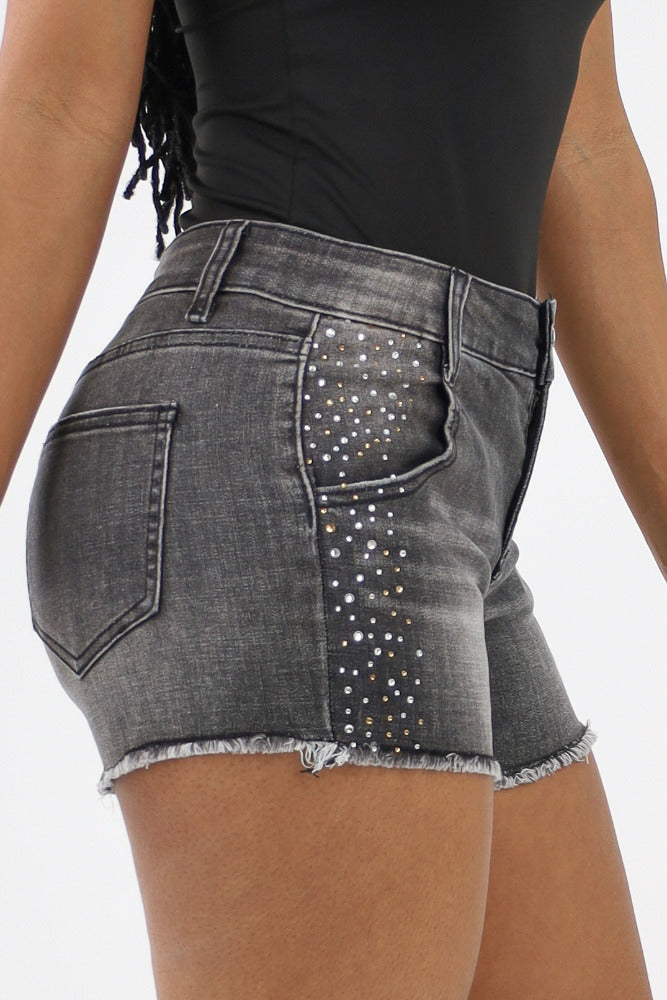 Elevate your summer look by adding in a touch of sparkle with these Side-Stone Denim Shorts!