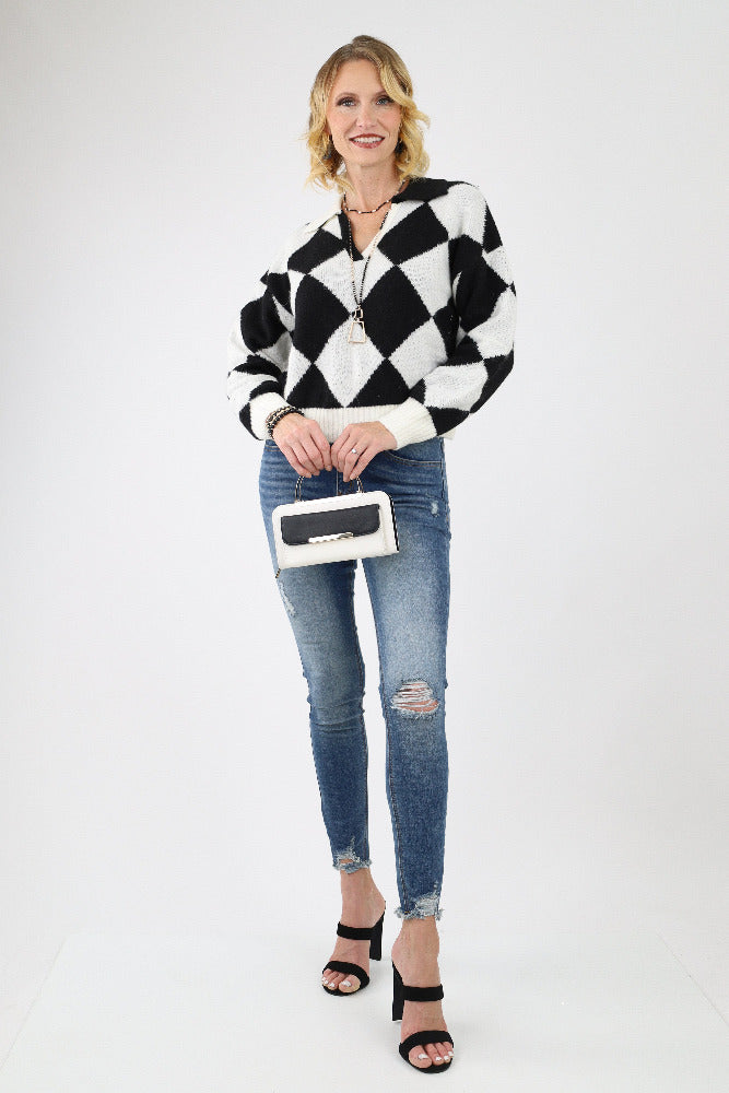 Wrap yourself in cozy style with our Diamond Print V Neck Sweater. The intricate diamond pattern adds a touch of modern flair to this classic piece, while the V-neckline enhances its feminine charm. Elevate your winter wardrobe with cozy elegance that effortlessly transitions from day to night.