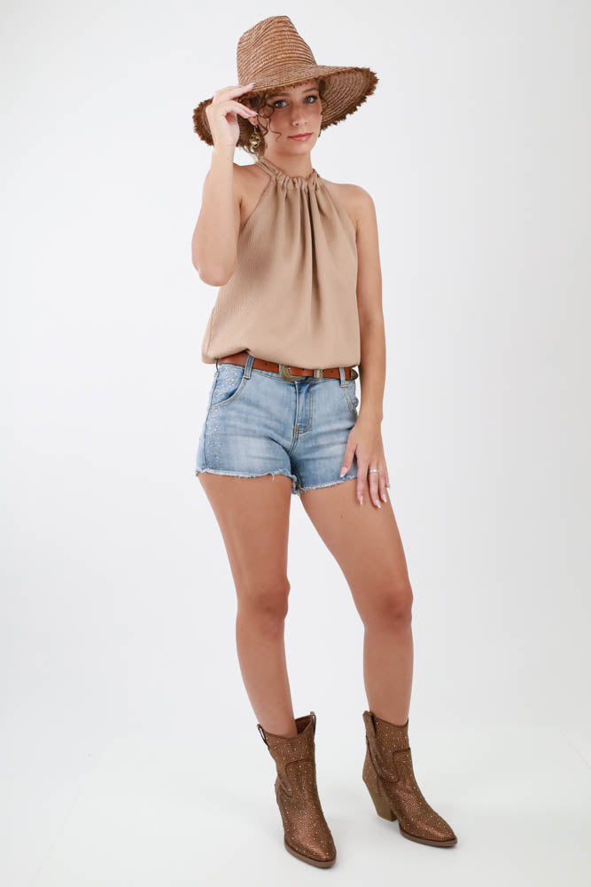 Satin Ruched Top - Tan