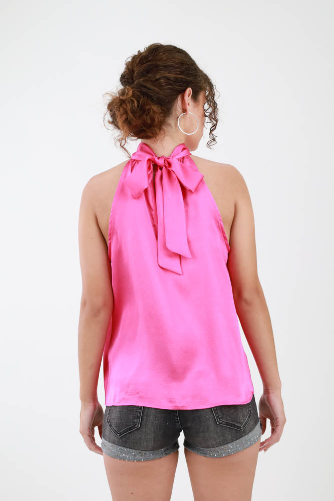 Shine bright in this Shiny Hammered Satin Tie Halter Top. Pair this with shorts or wide leg pants for a cute chic look or pair with jeans for your night out!