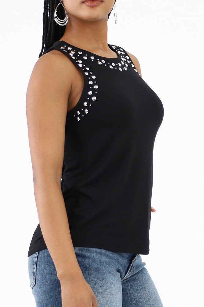 Stylish Studs Embellished Tank Top -Black