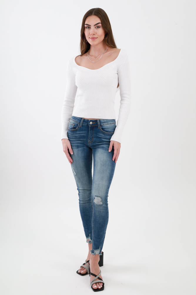 Sweetheart Neckline Top -Off White