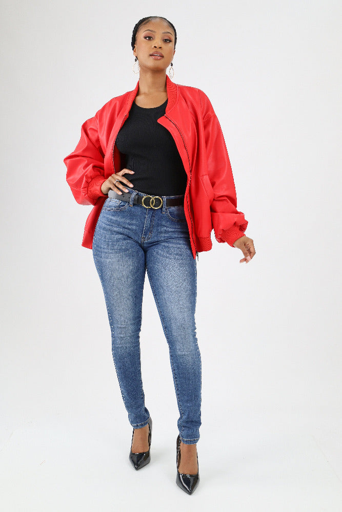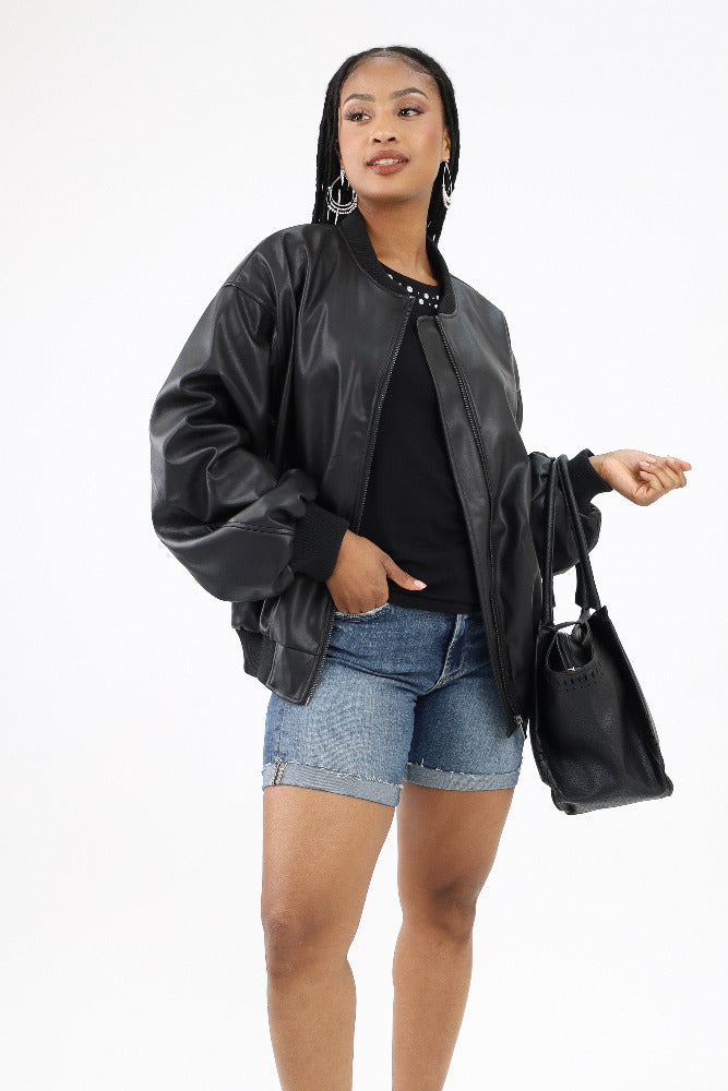 Faux Leather Blazer - Black