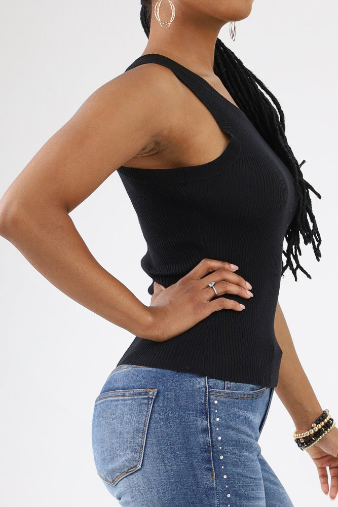 Sleek Racerback Knit Tank Top -Black