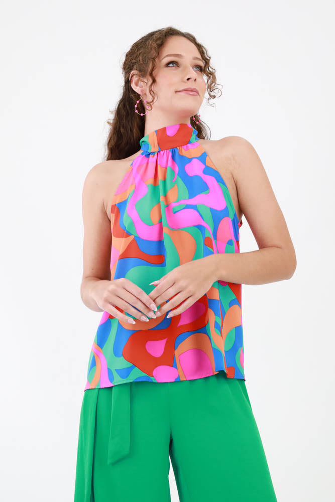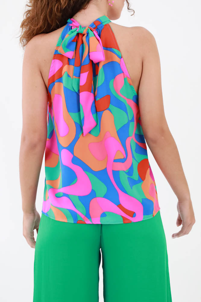 Pink Halter Tie Top - Mint