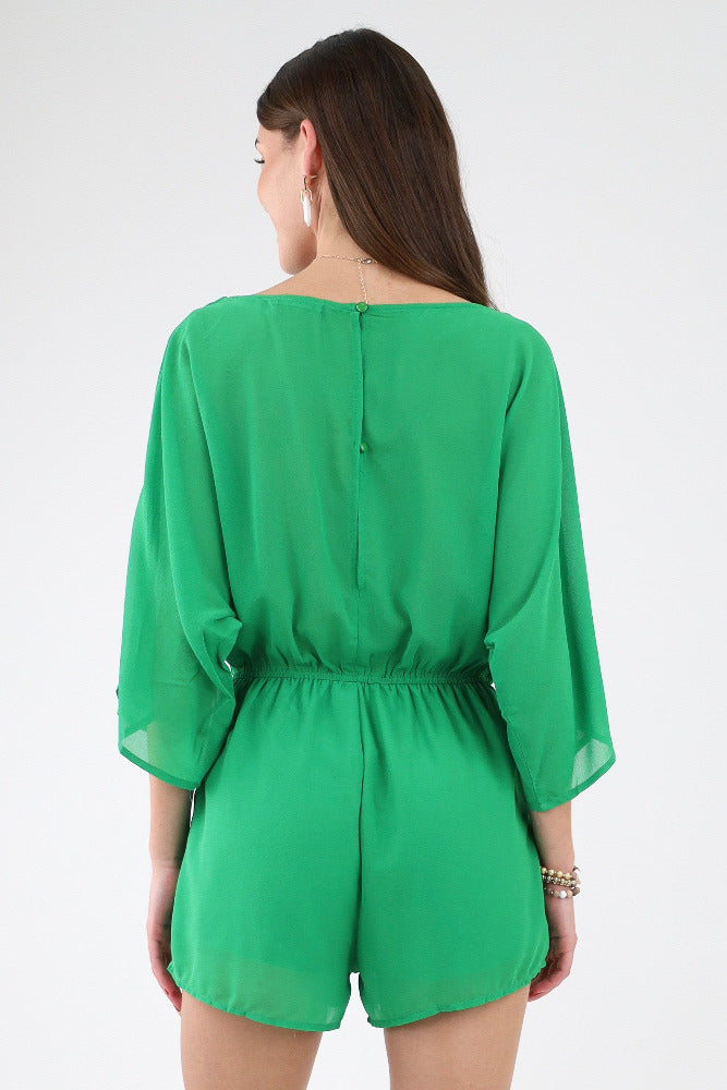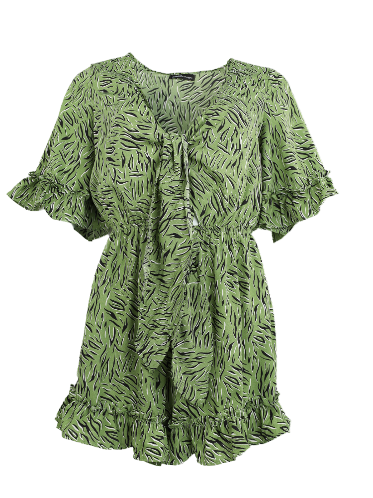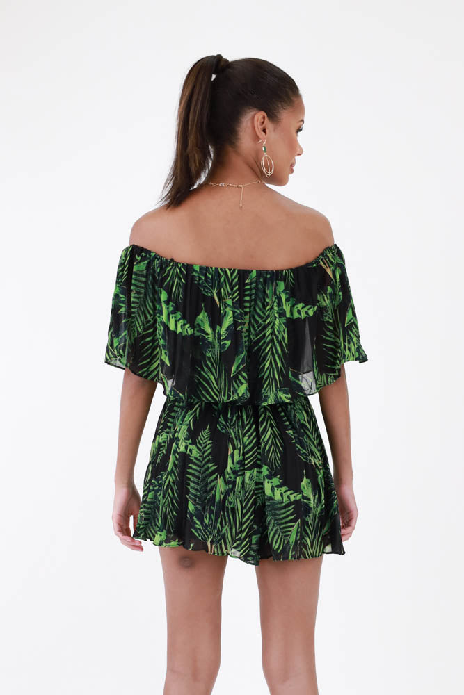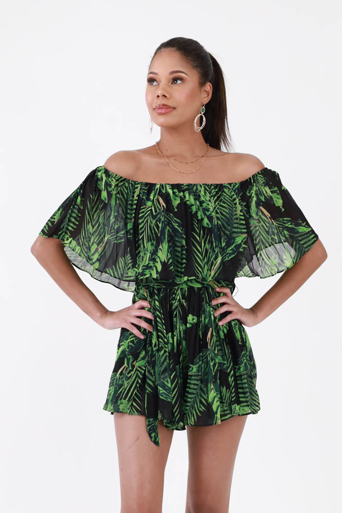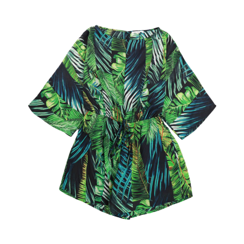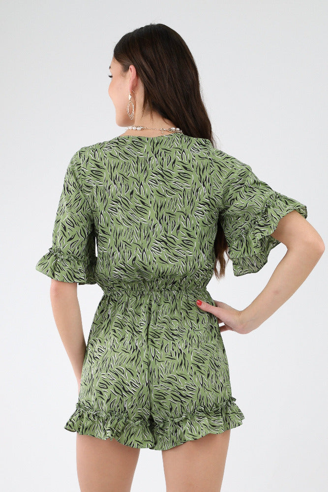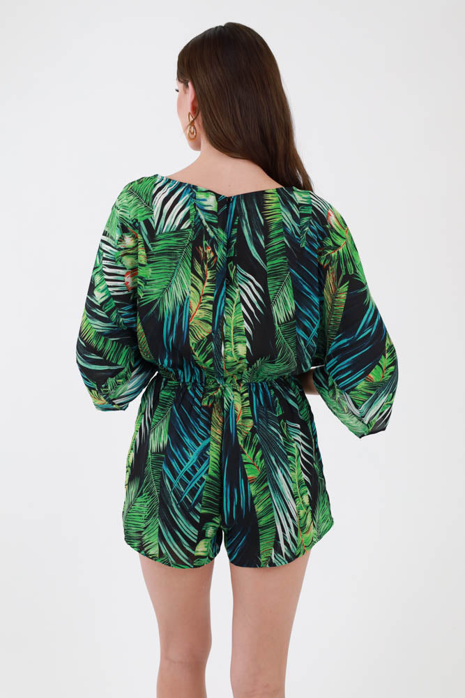 Tropical Round Neck Romper - Green