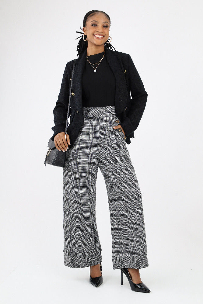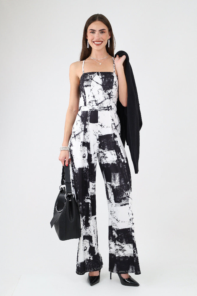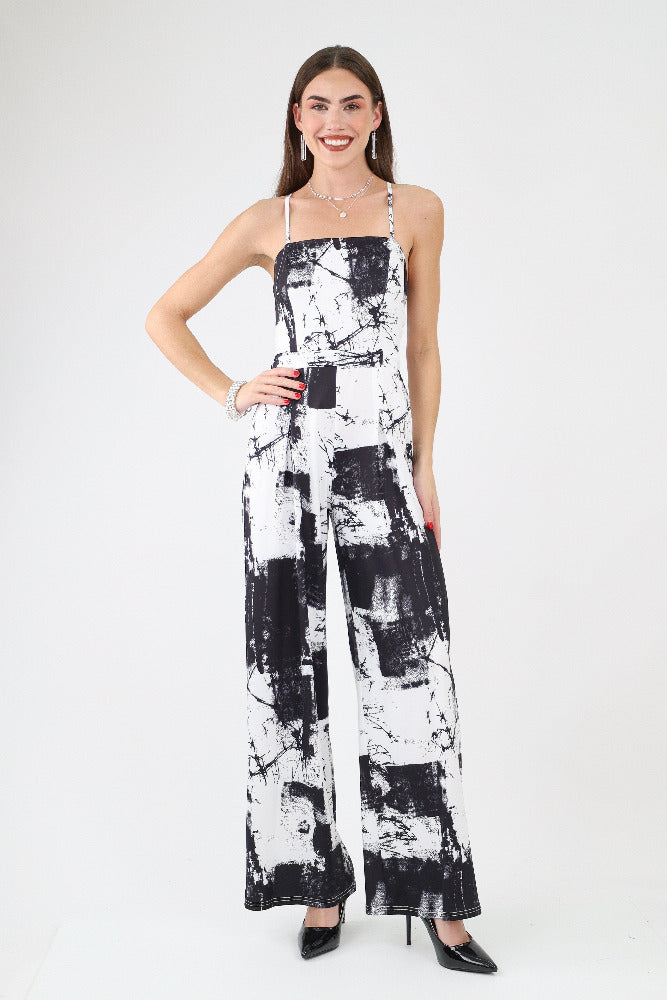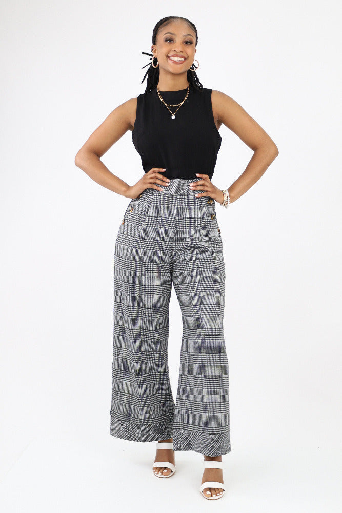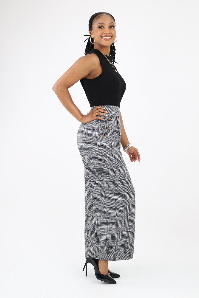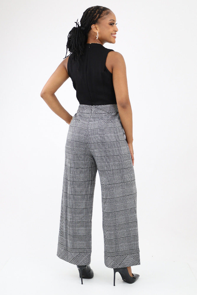 Plaid Sleeveless Jumpsuit - Black