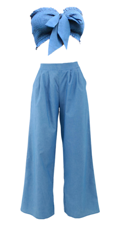 Denim Duo Top and Pants Set - Blue