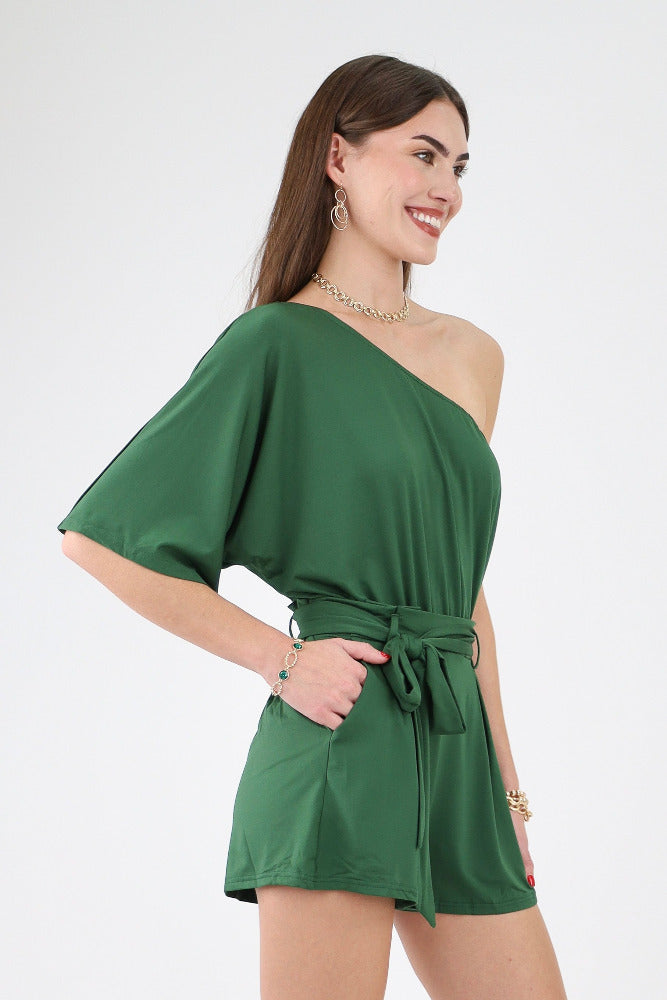 One Shoulder Venetian Romper