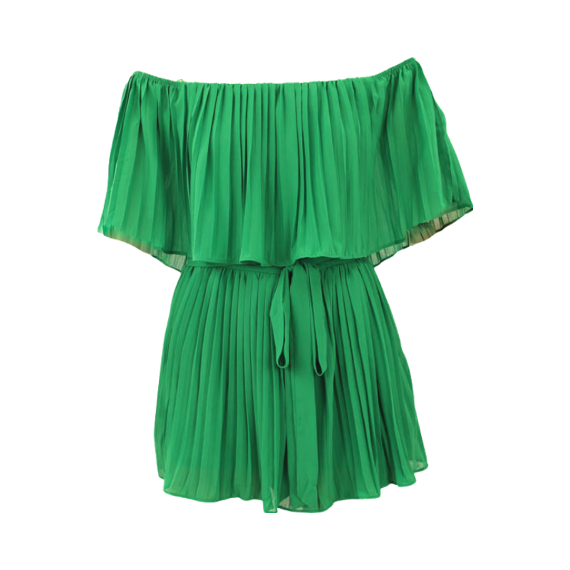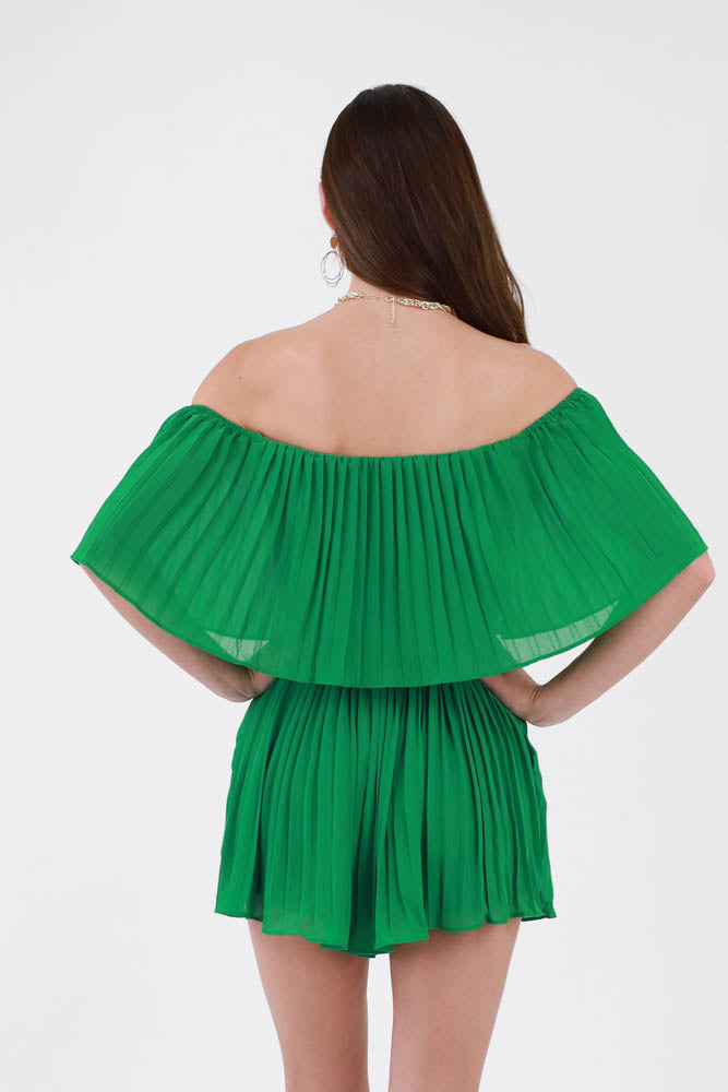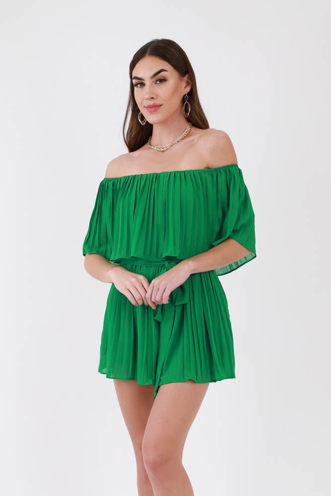 Pleated Off Shoulder Romper with Tie