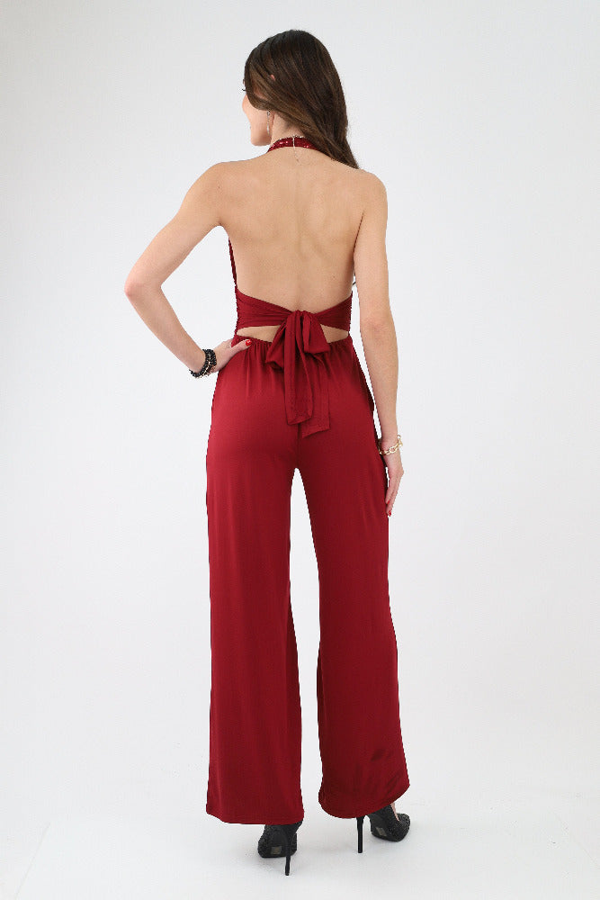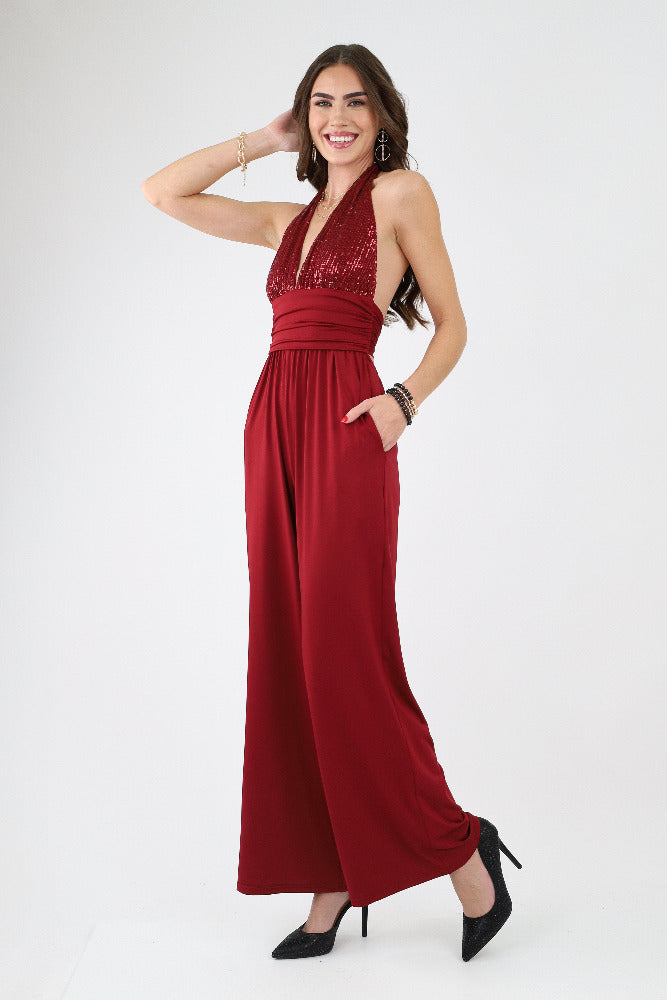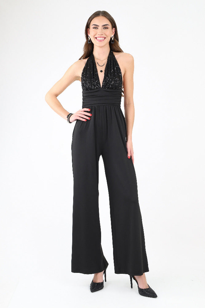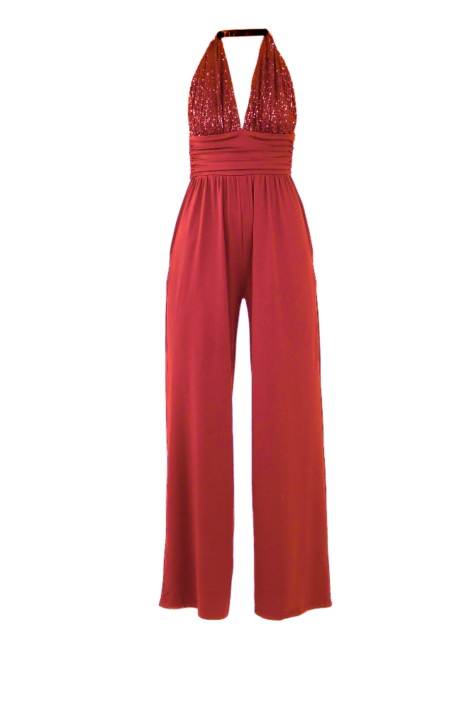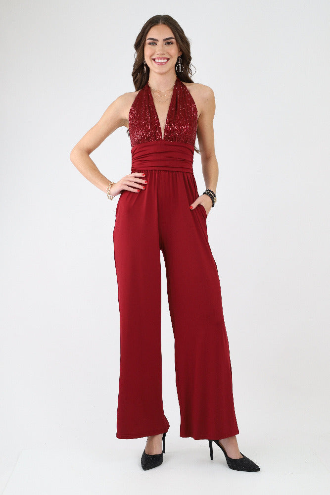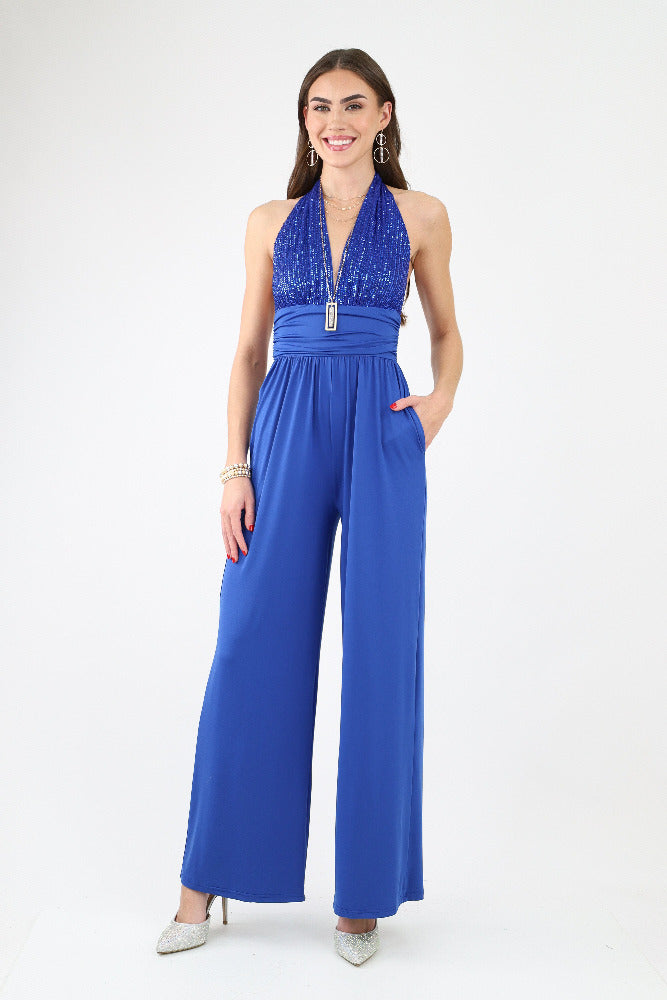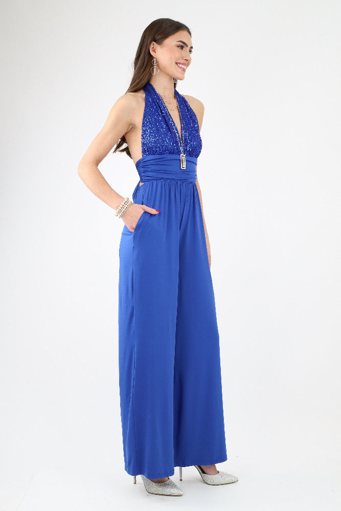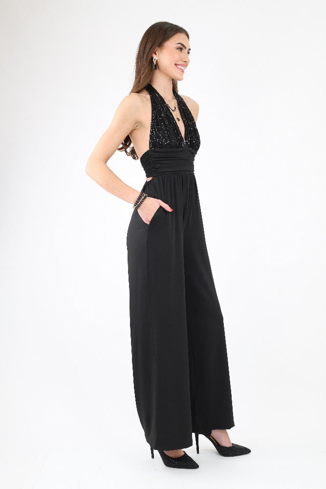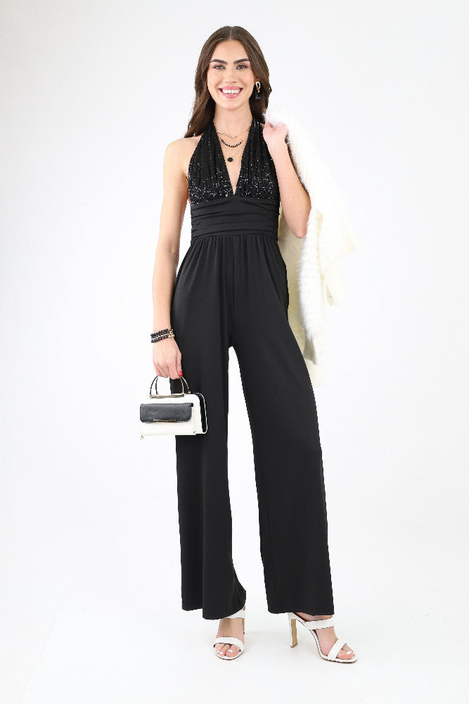 Sequin Halter Venetian Jumpsuit