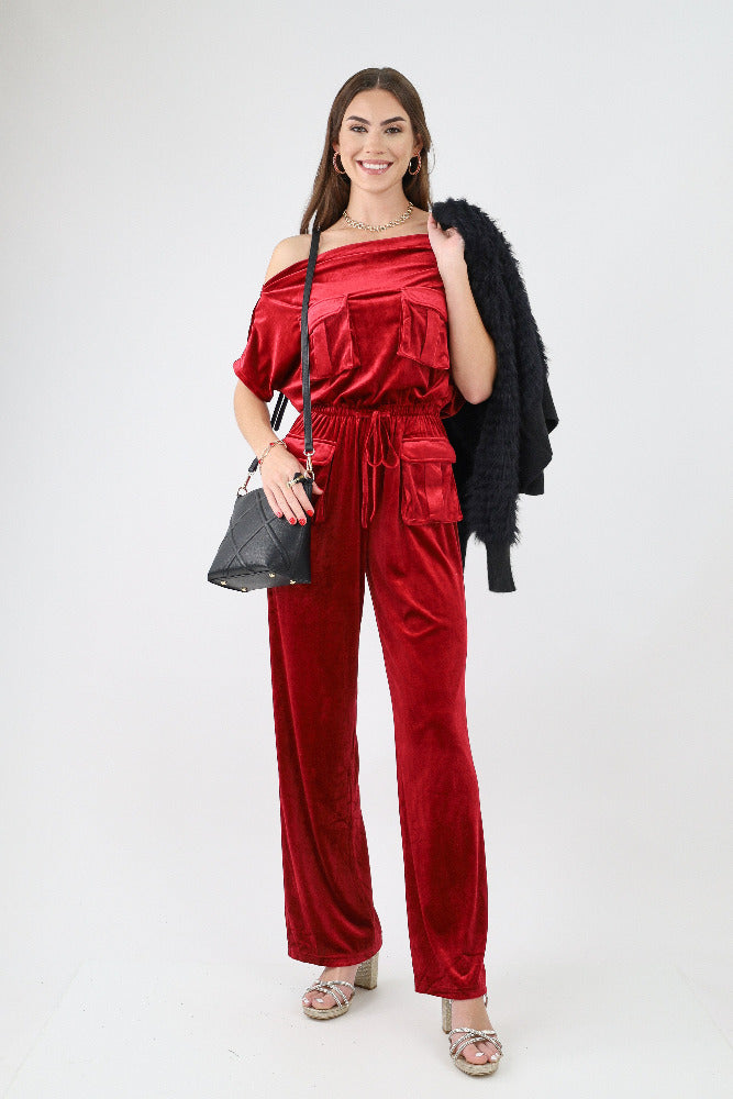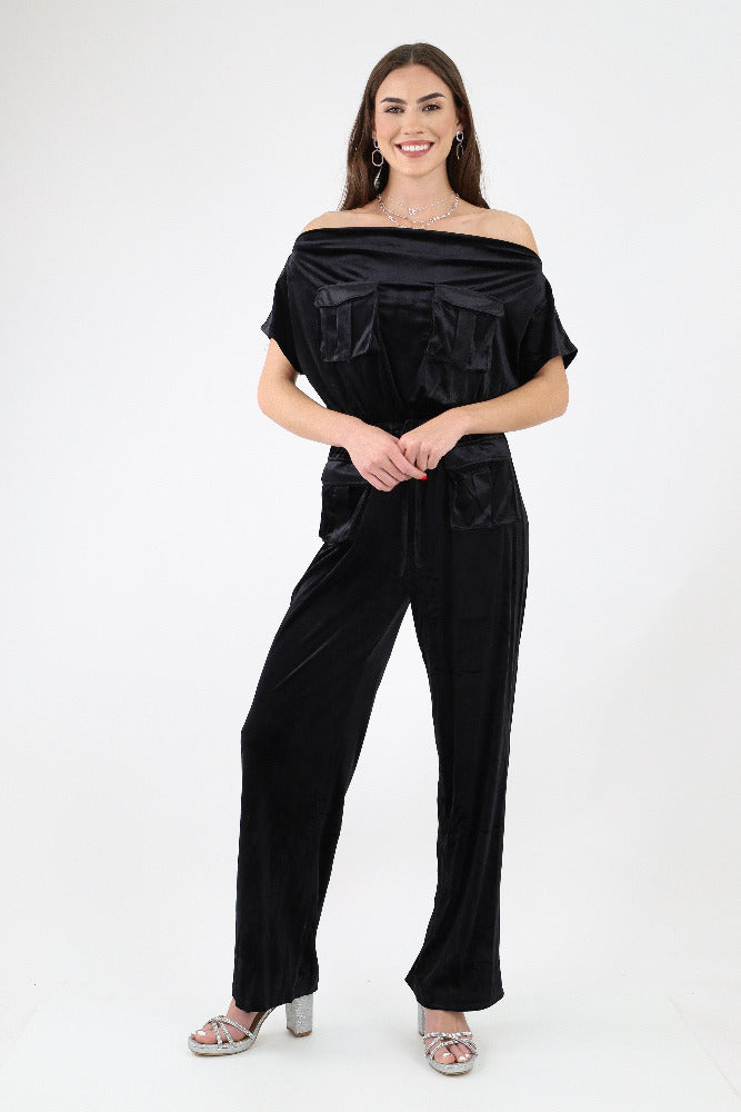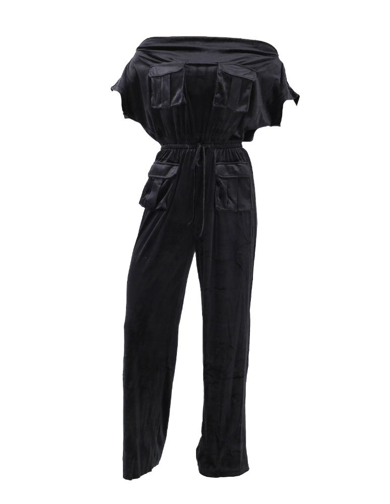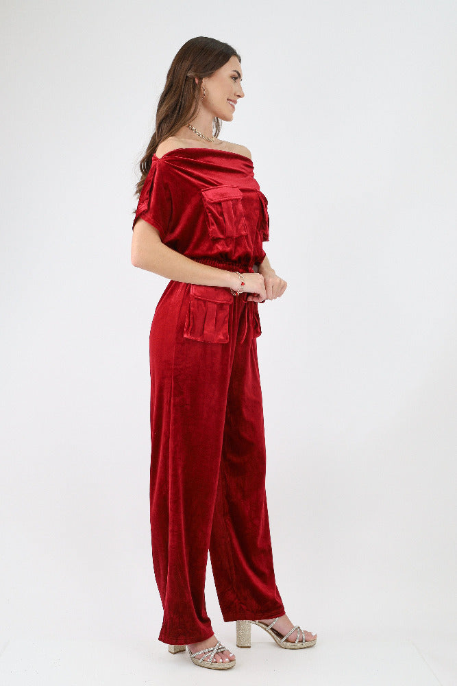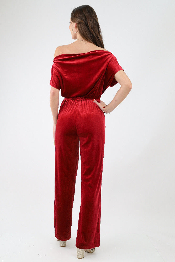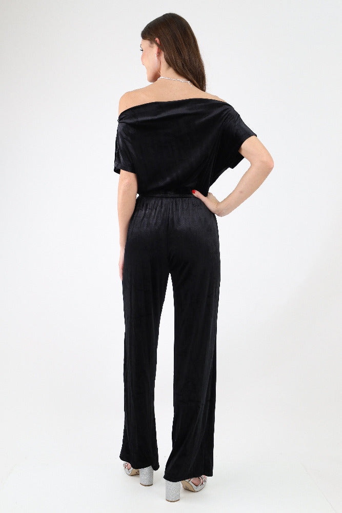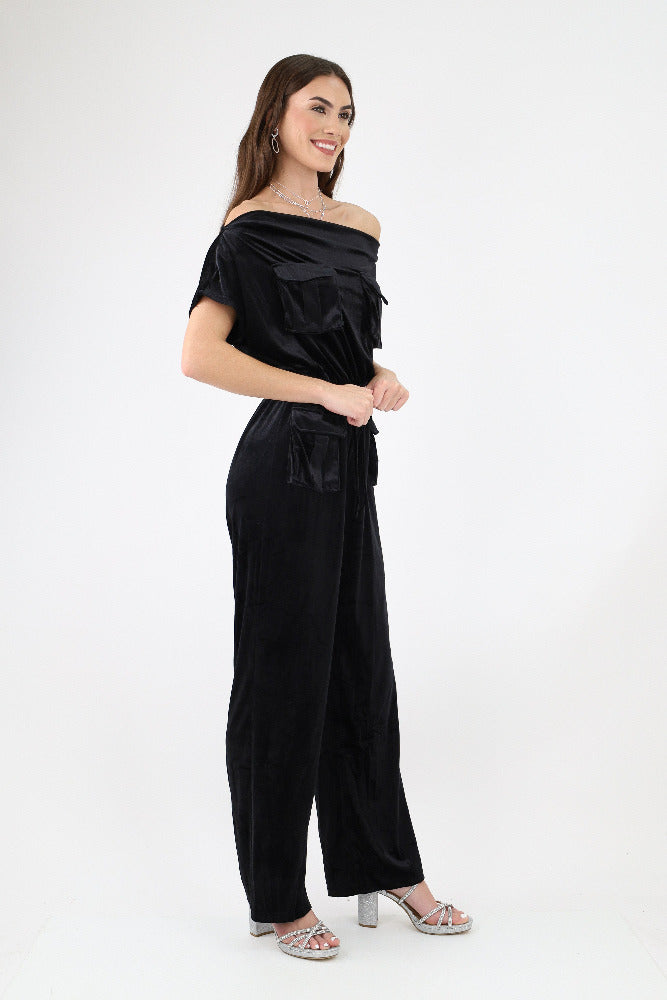 Off Shoulder Velvet Jumpsuit