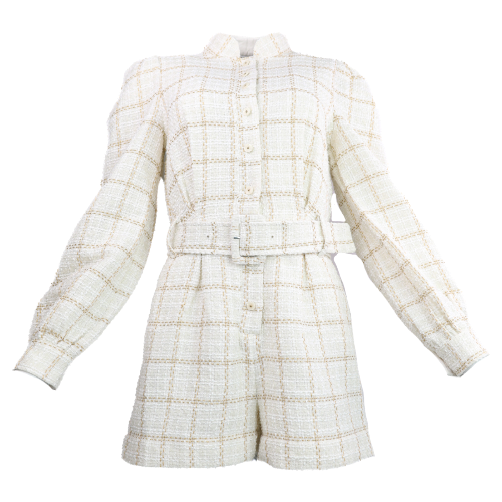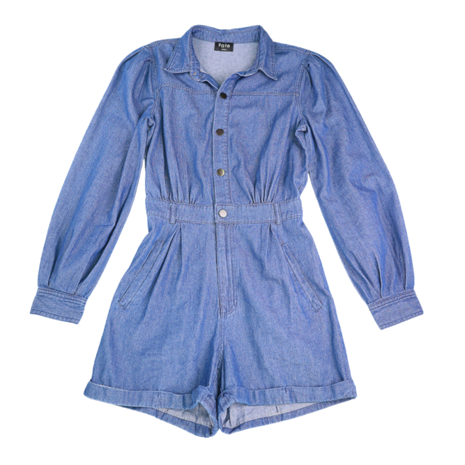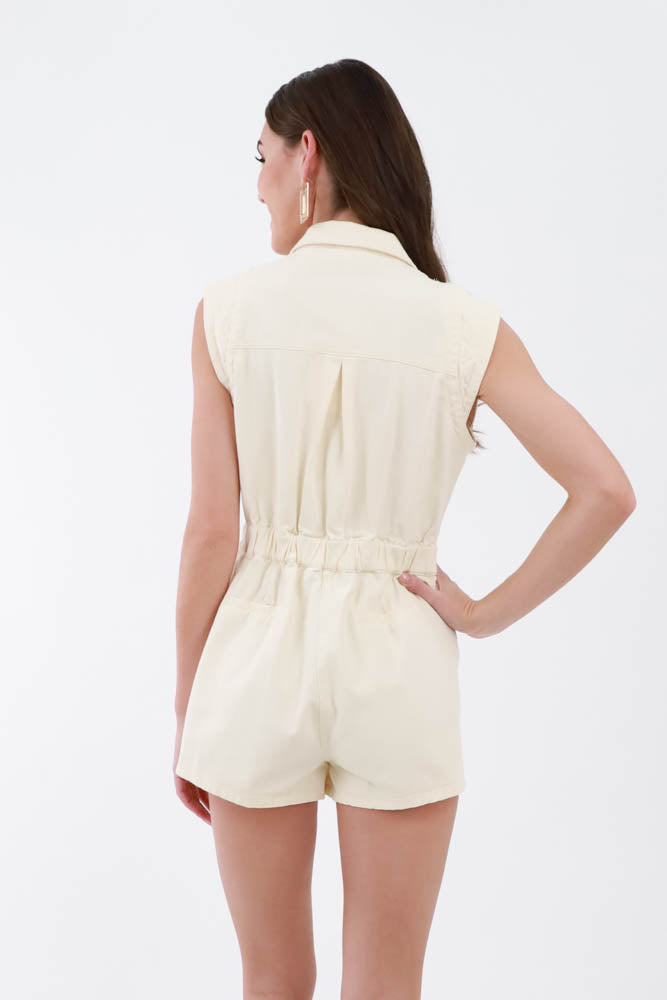 Classic Denim Romper - Cream