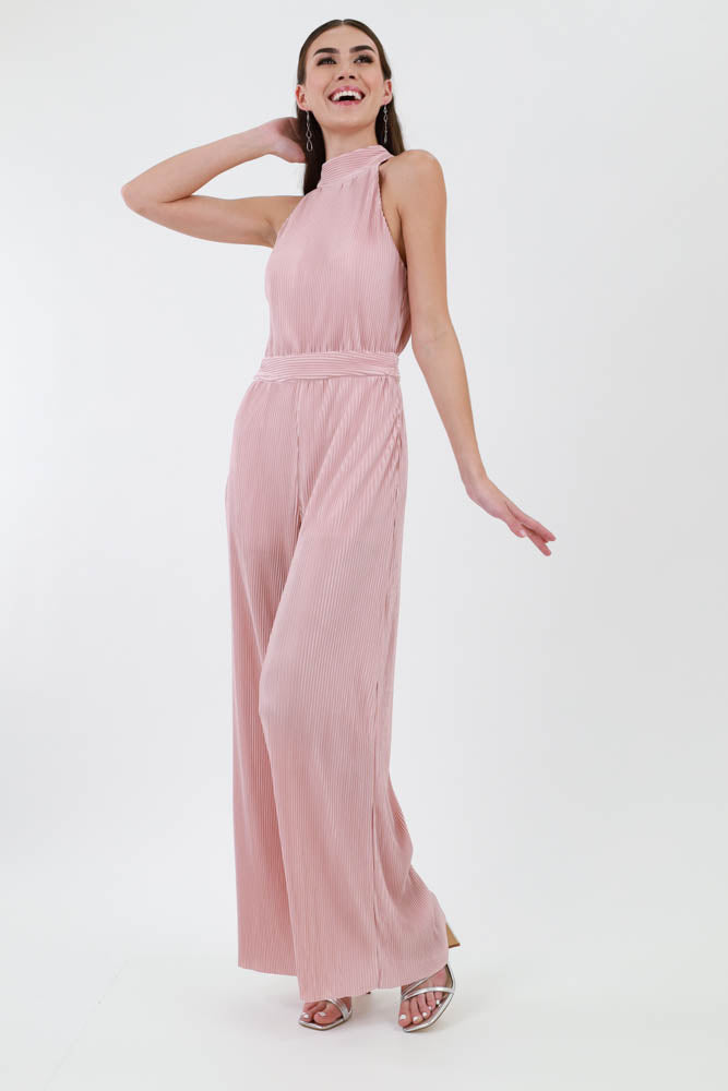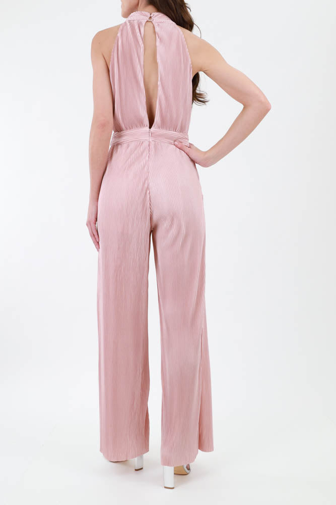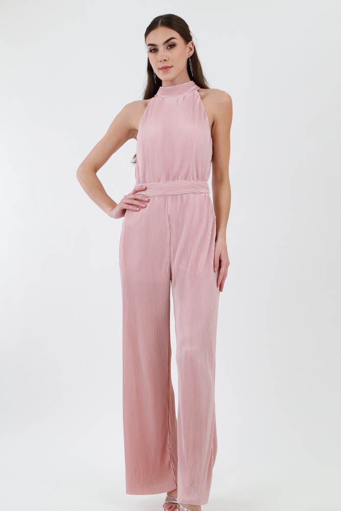 Halter Pleated Jumpsuit - Mauve