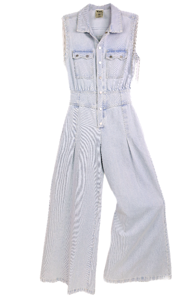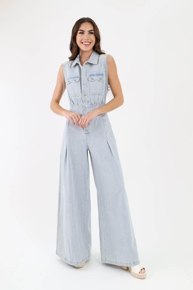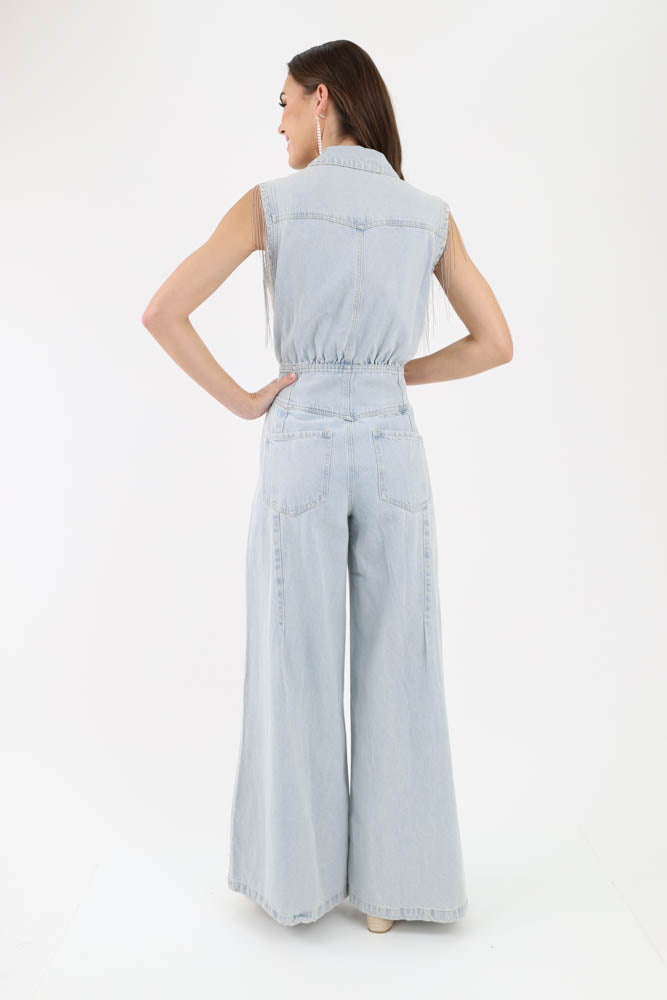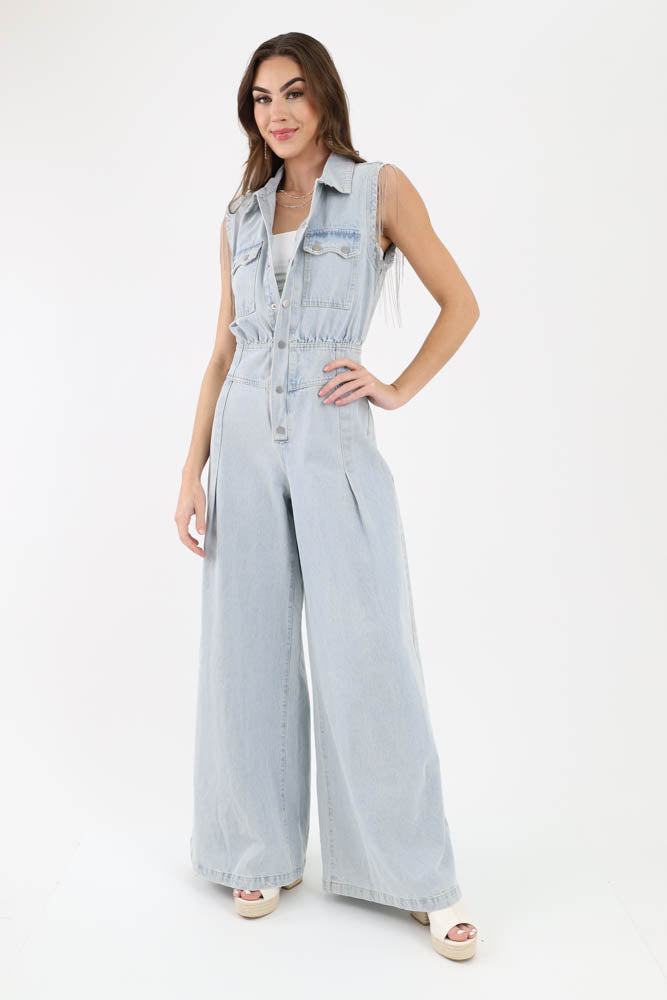Fringe Denim Jumpsuit - Blue