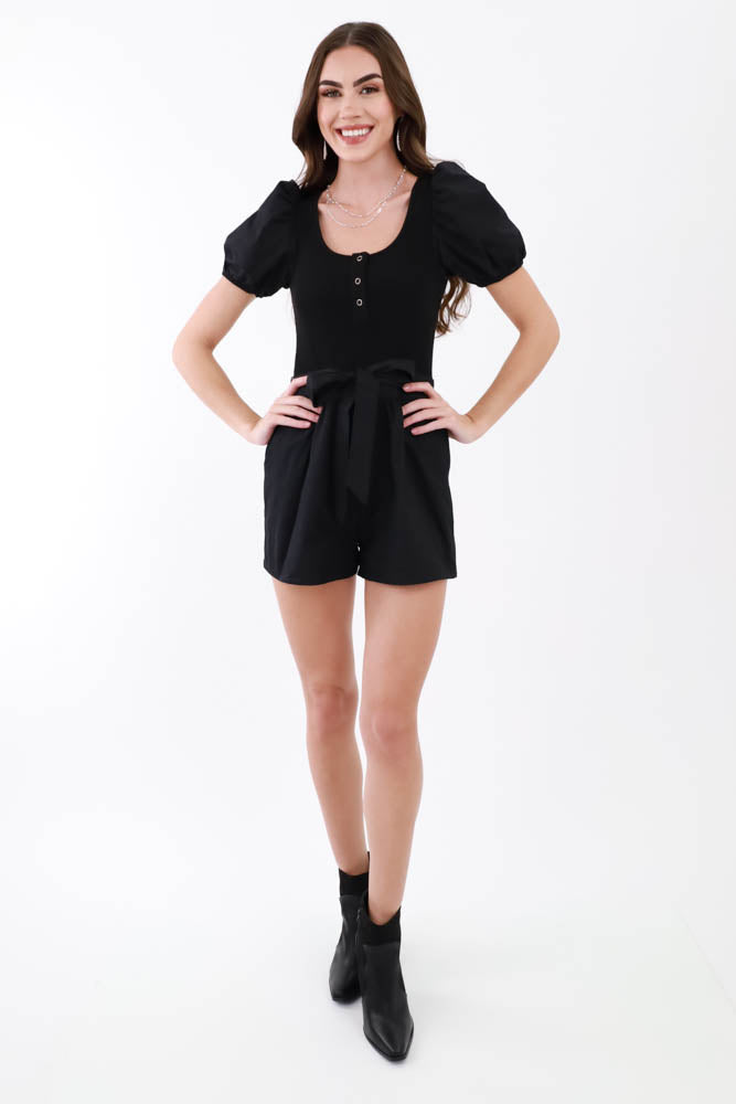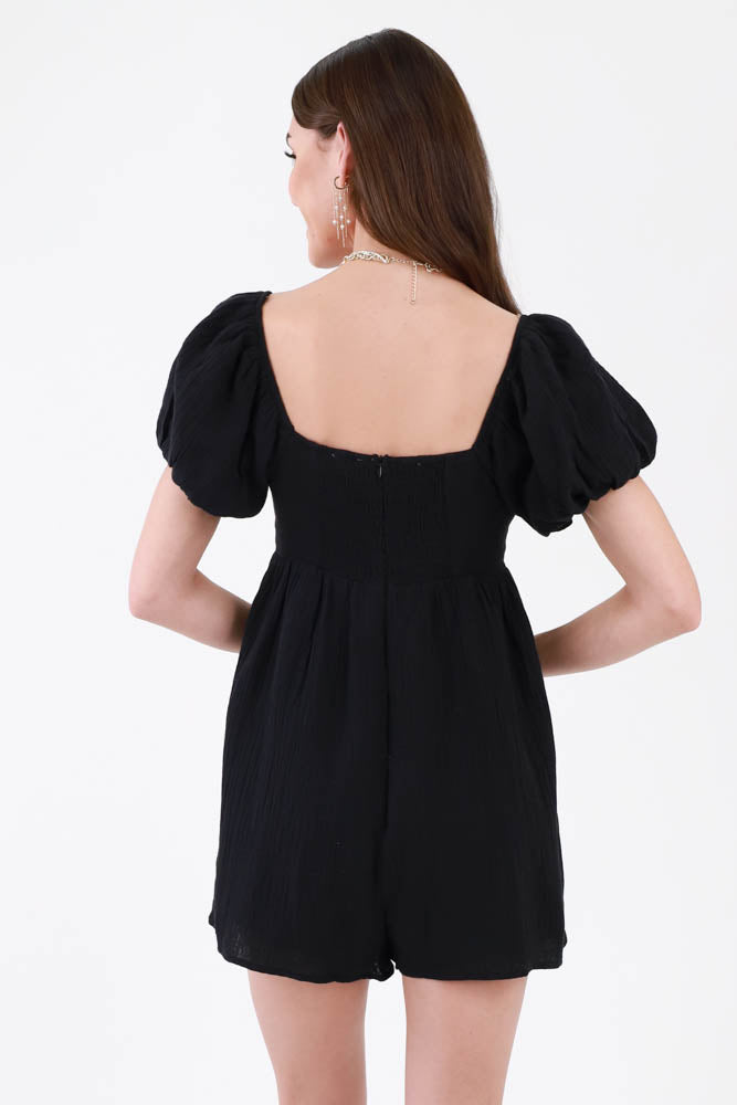 Sunday Brunch Square Neck Romper - Black