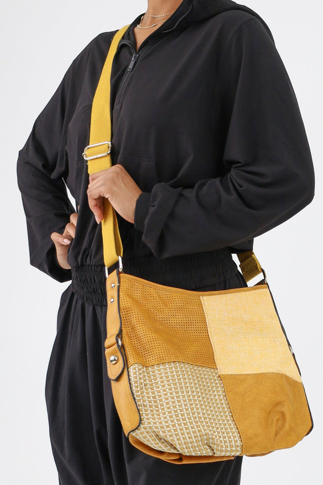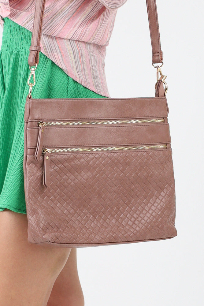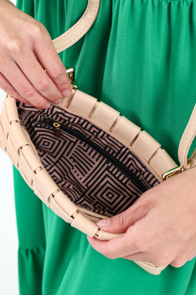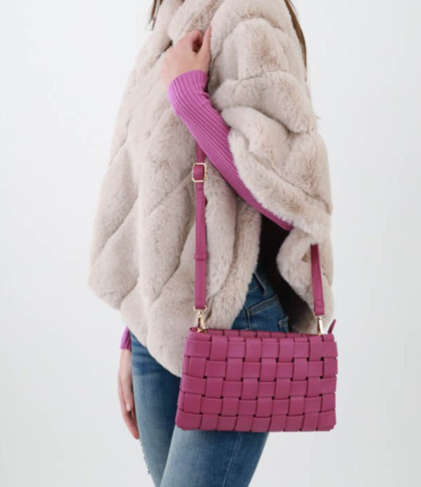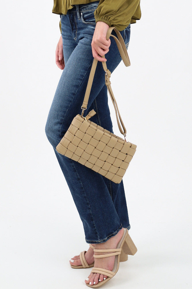 Woven Crossbody Bag Faux Vegan Leather