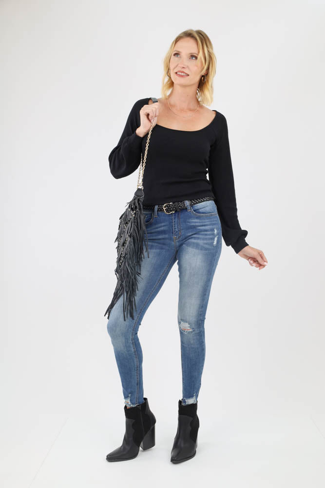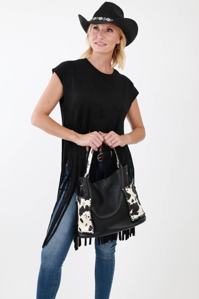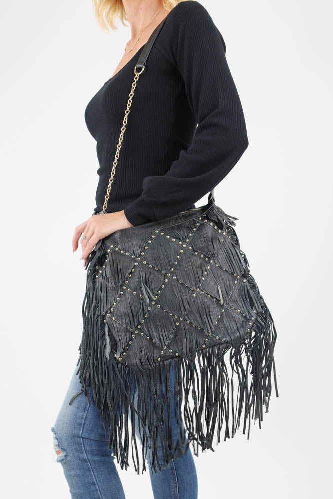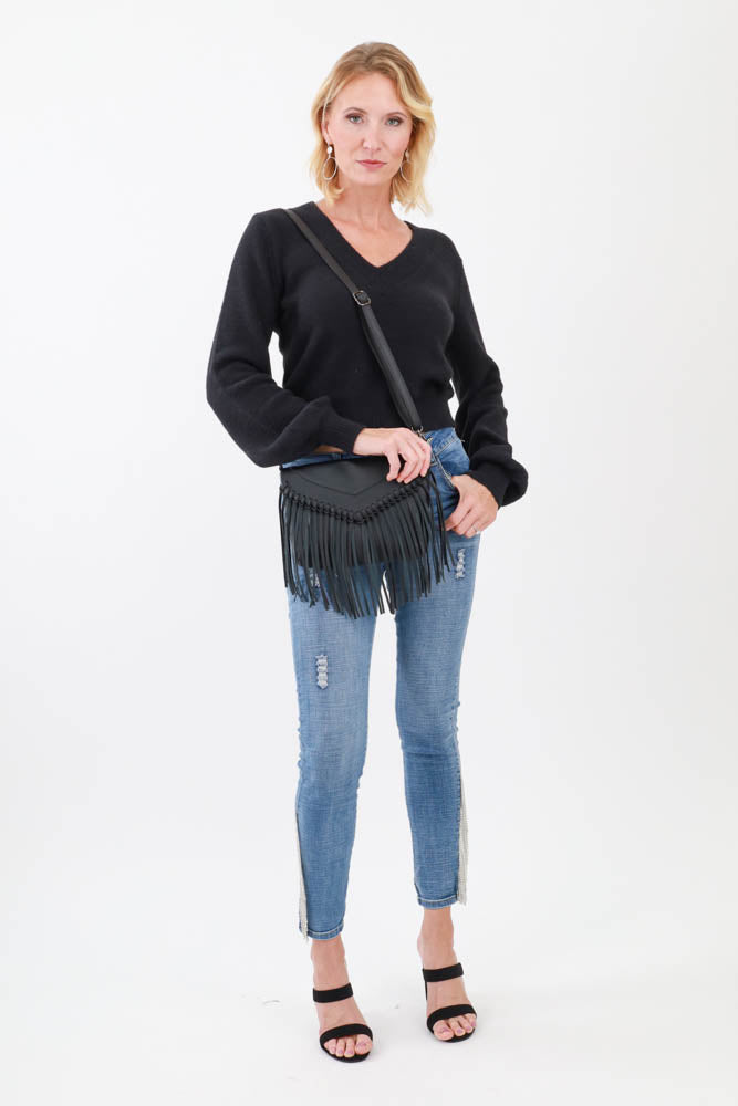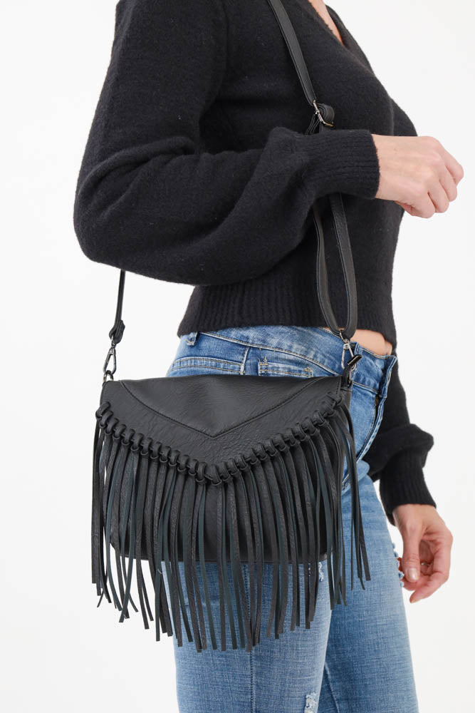 Fringe All Day Crossbody Bag - Black