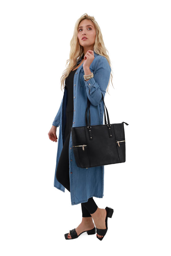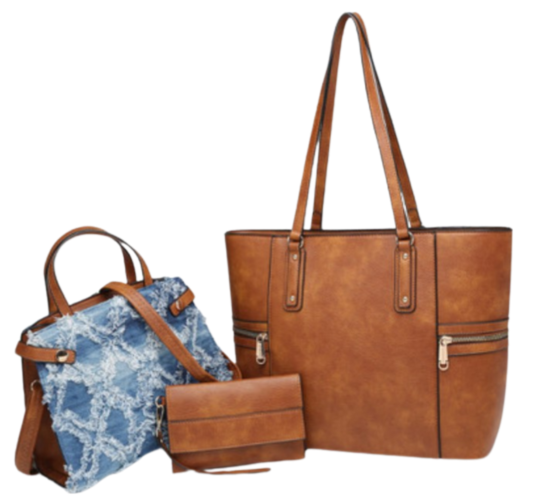 Don't miss out on our women's tote handbag set! Ideal for all occasions, it's a versatile package. The large tote accommodates your laptop and more. With its fun details and optional straps, is perfect for lighter loads. Plus, it includes a matching wallet for added convenience.