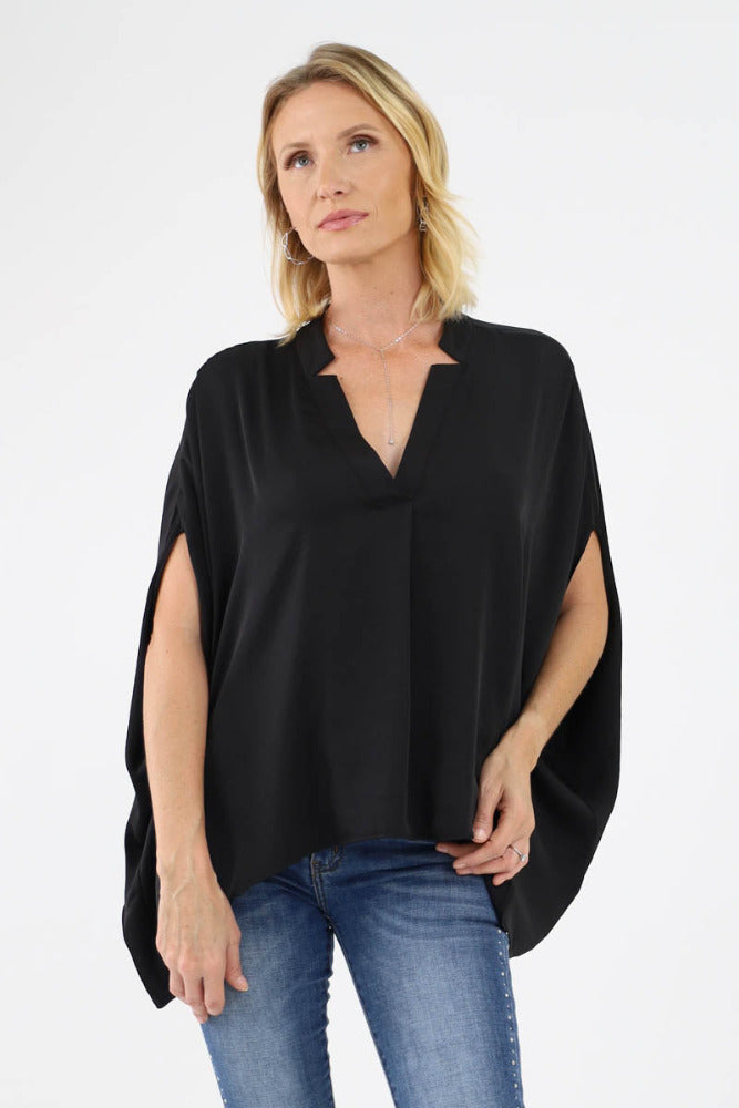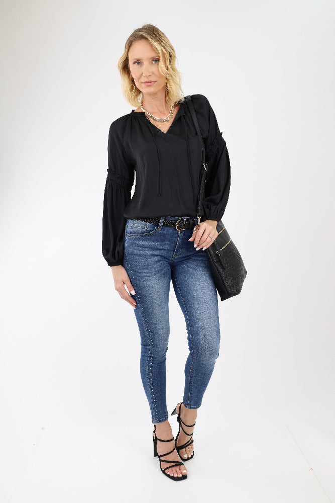 Satin Sleeve Blouse -Black