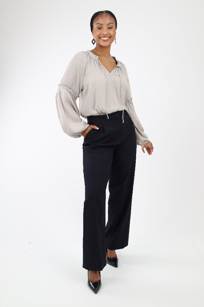 Satin Sleeve Blouse -Gray