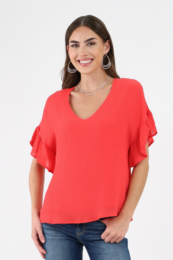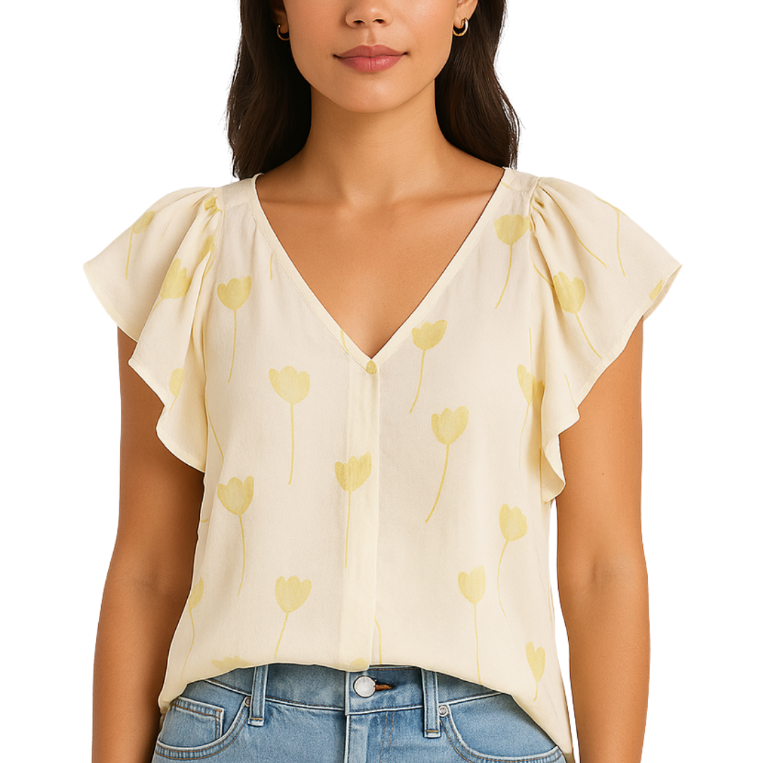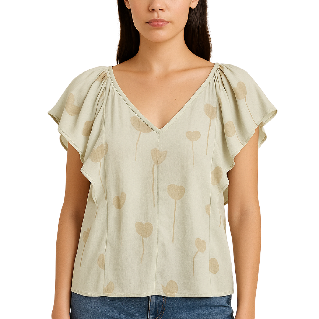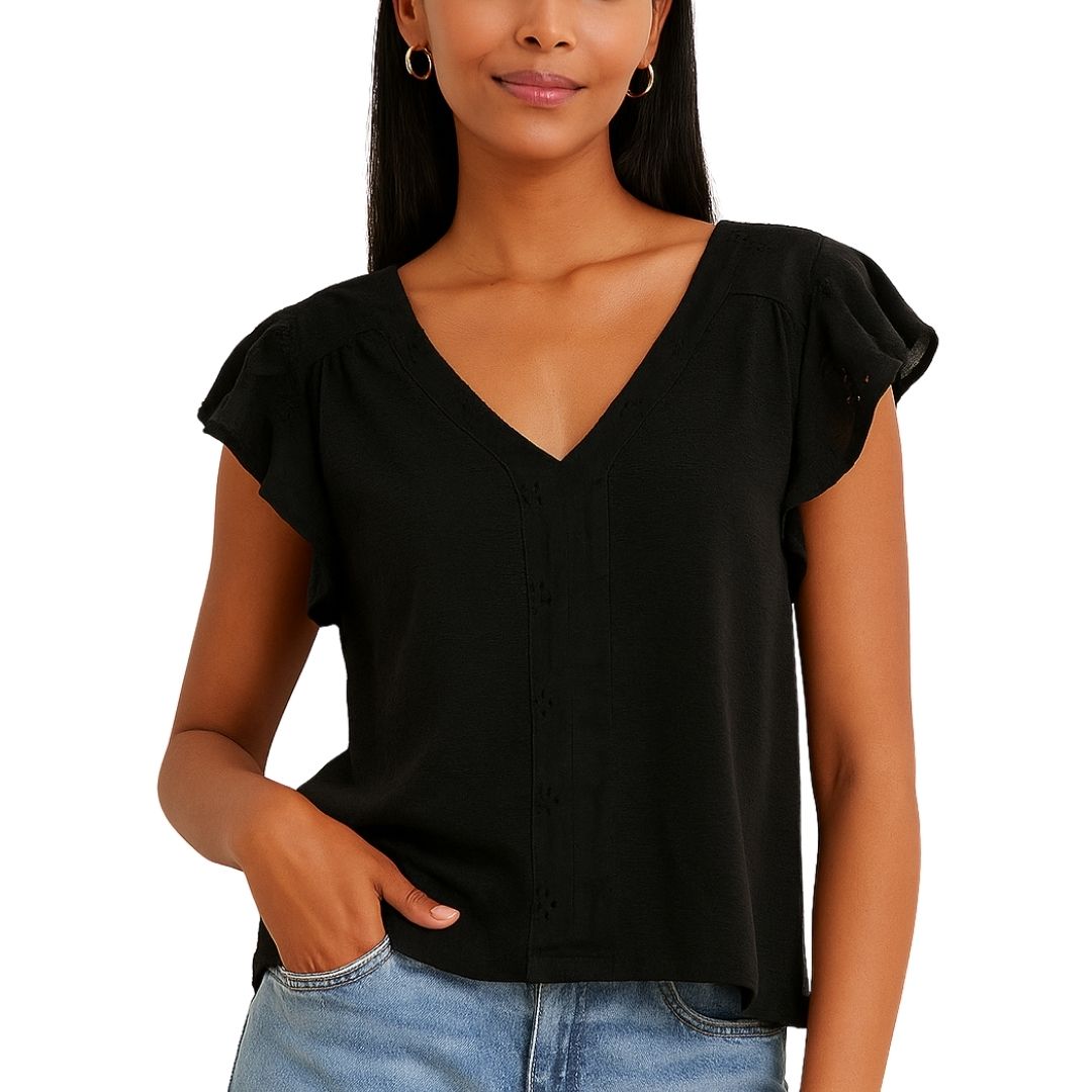 V-Neck Eyelet Lace Flutter Sleeve Top
