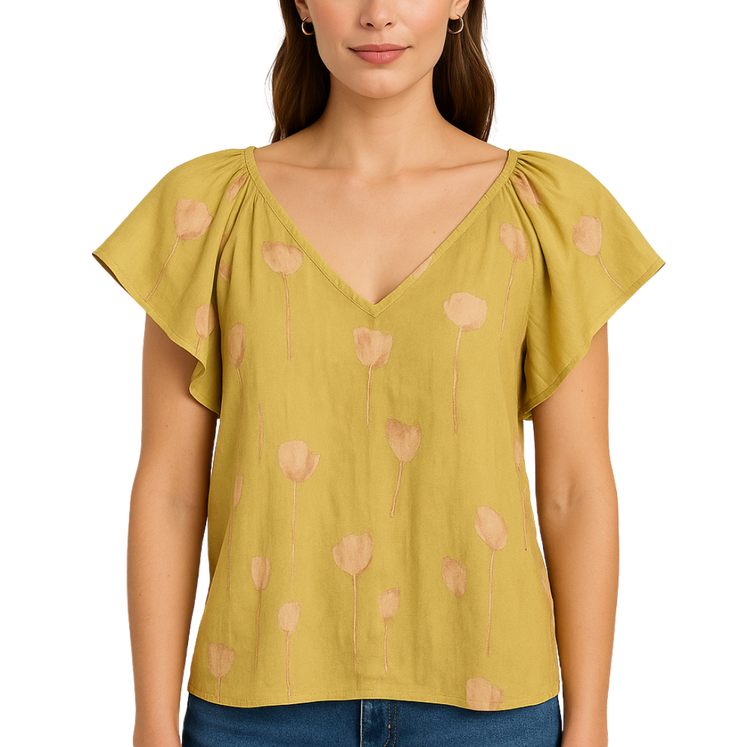 Printed V-Neck Top