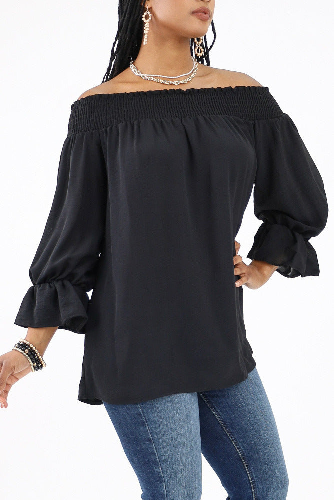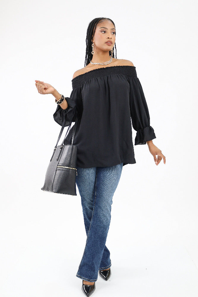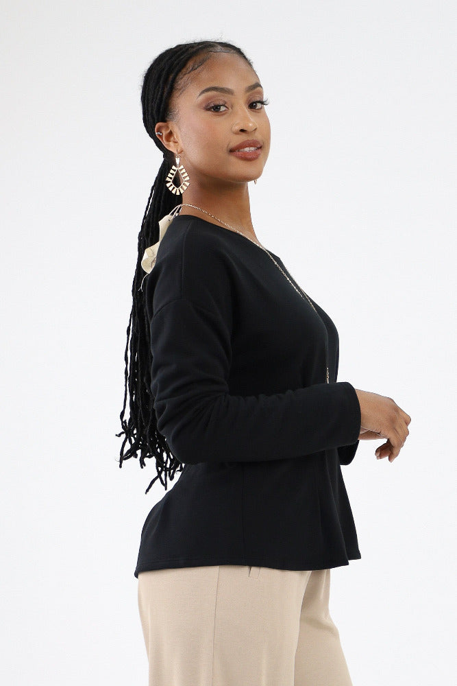 Peplum Drop Shoulder Top - Black