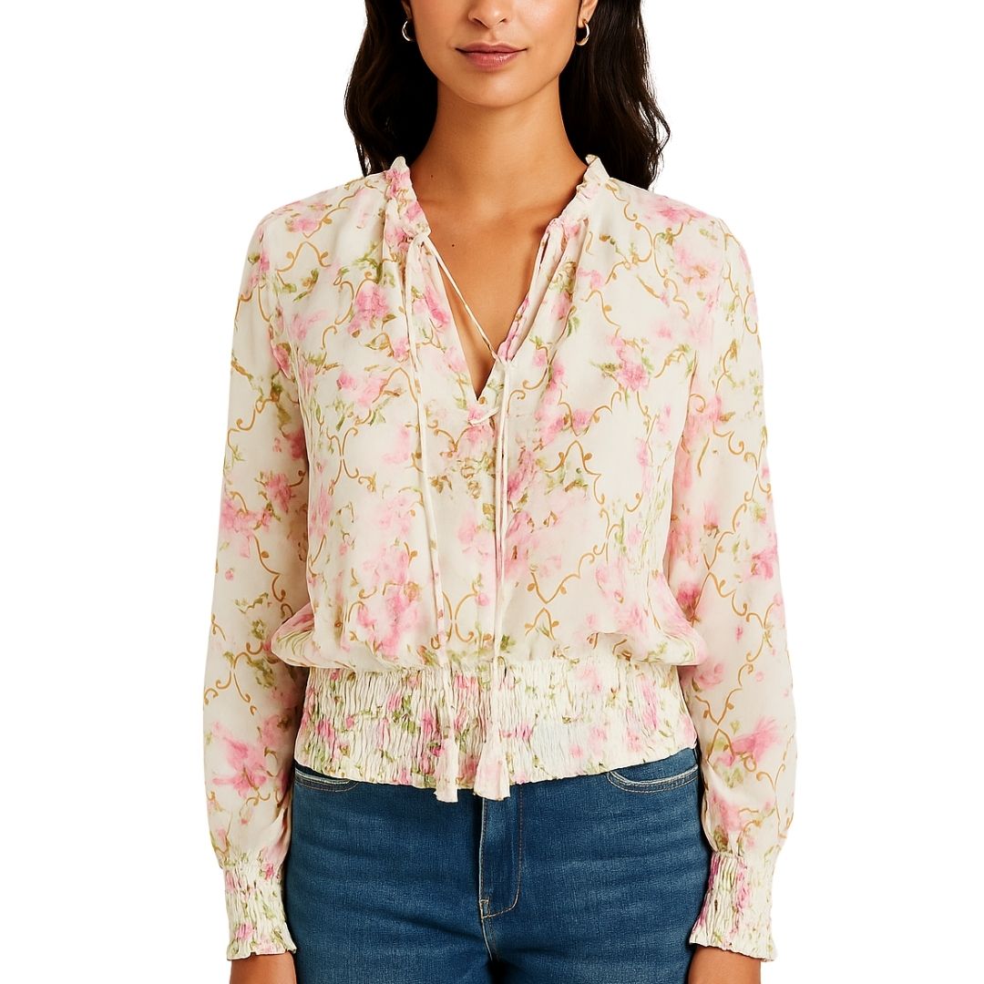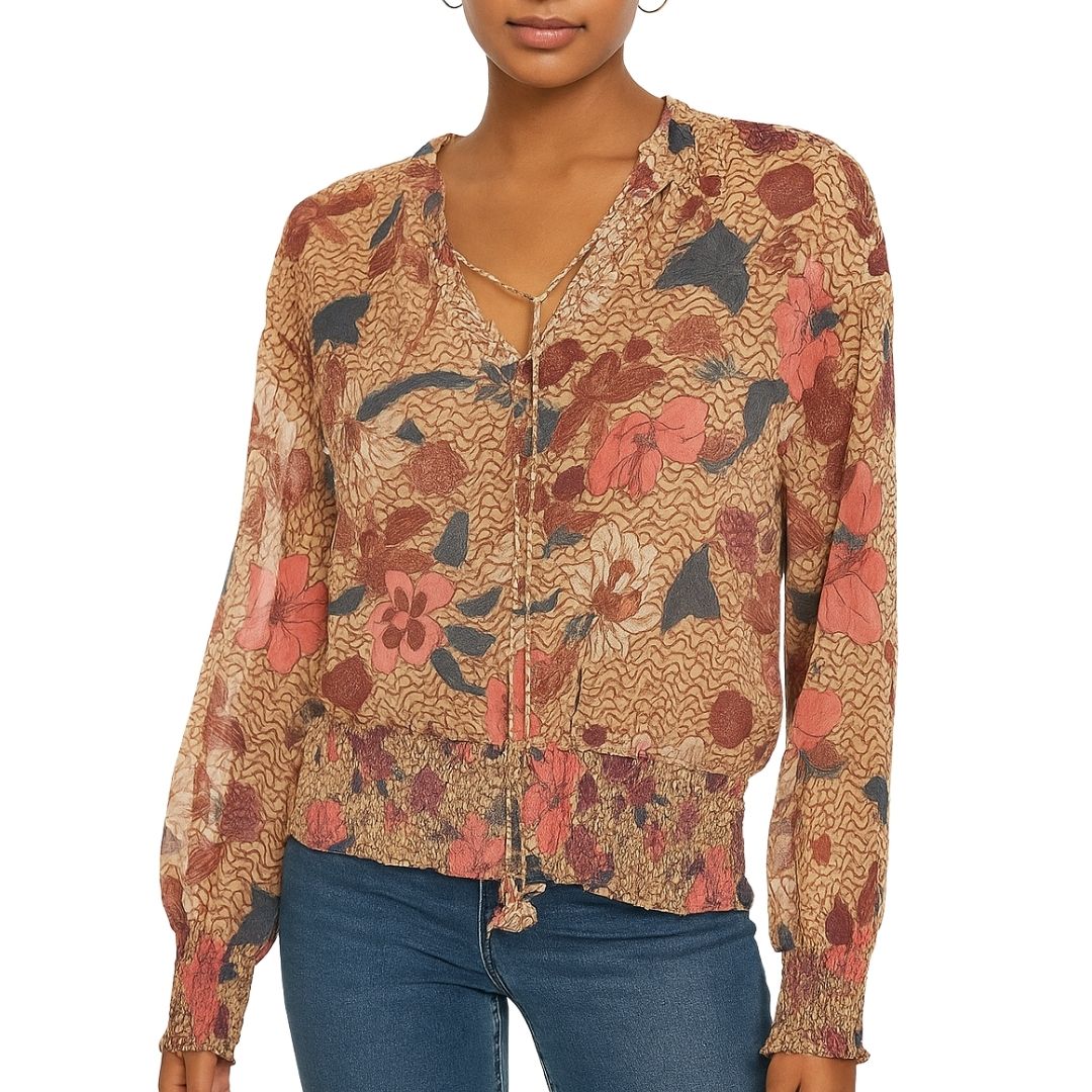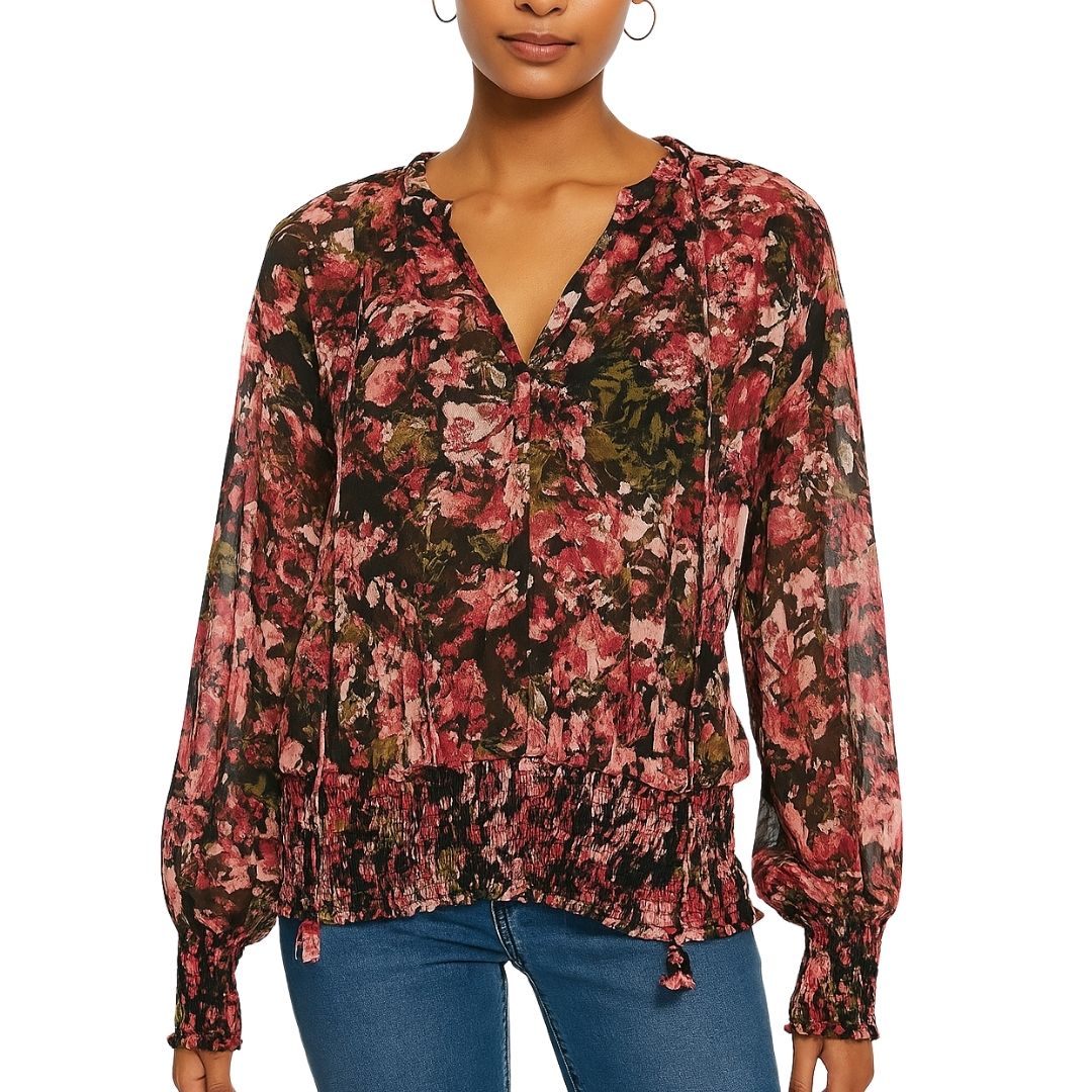 Smoked Bottom Peasant Chiffon Blouse