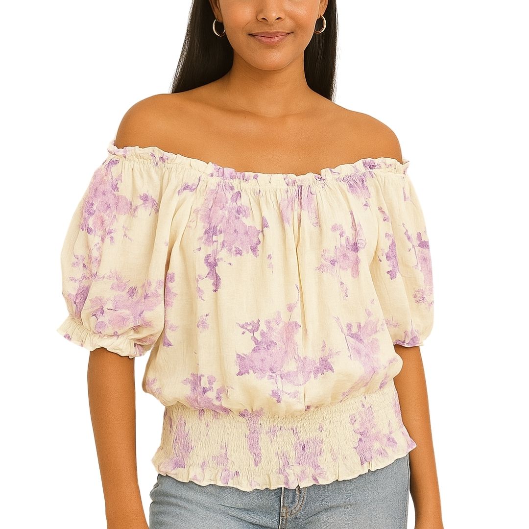 Double Gauze Floral On and Off Shoulder Top