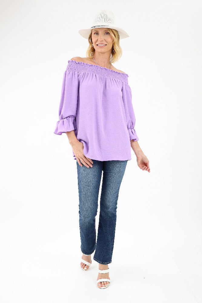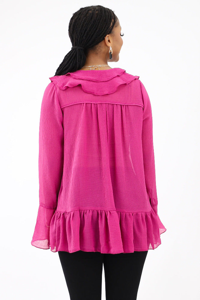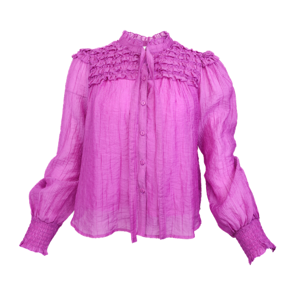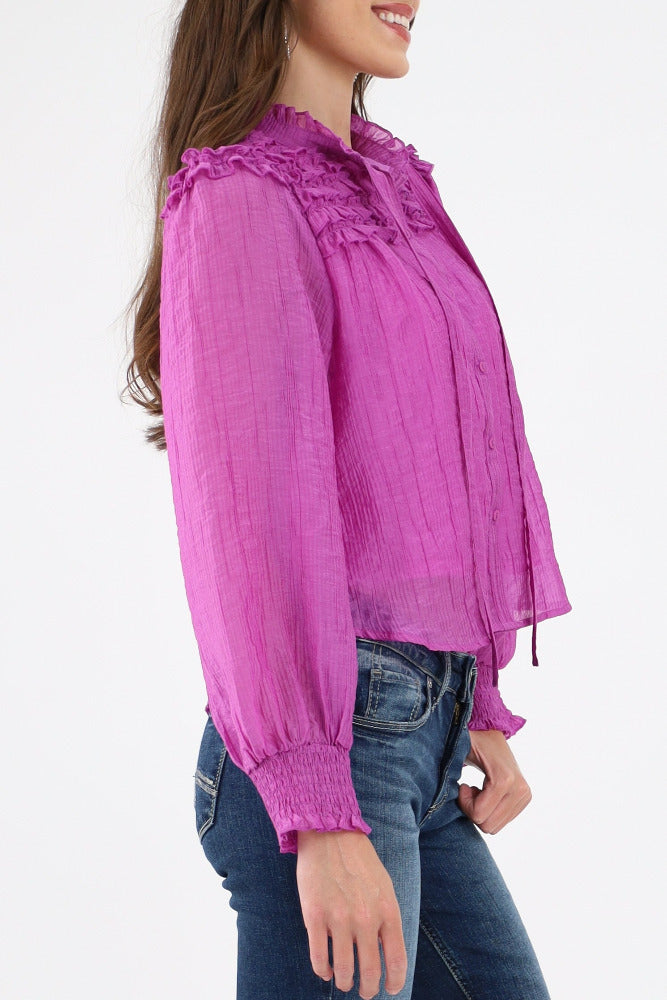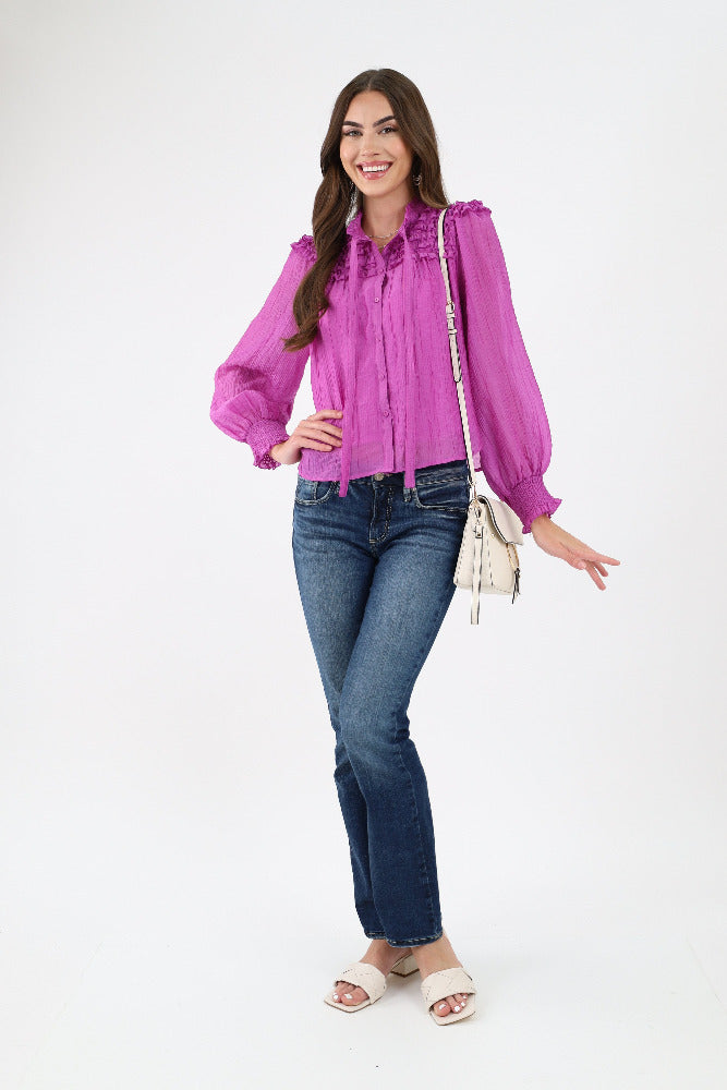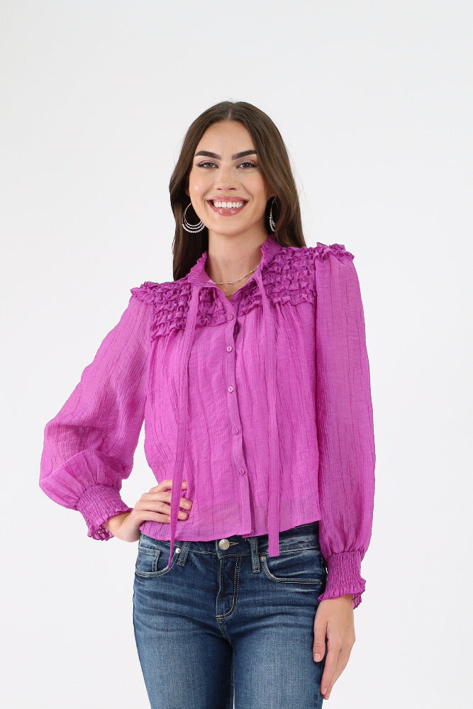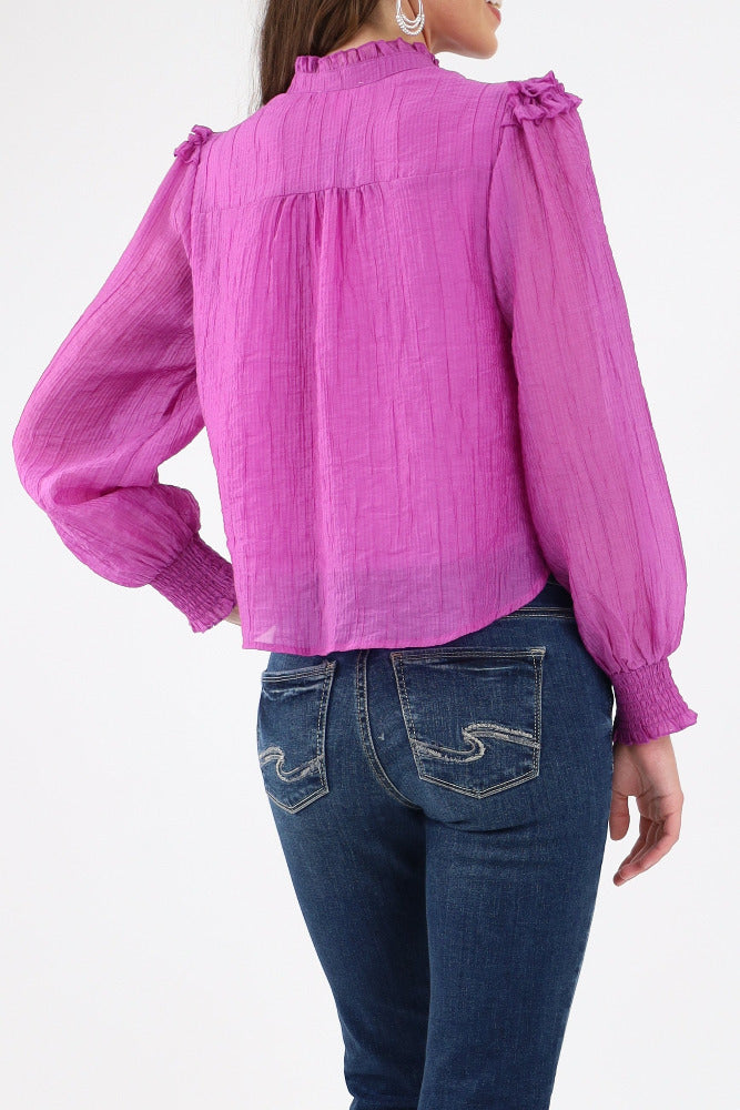 Ruffle Yoke Balloon Sleeve Top - Orchid