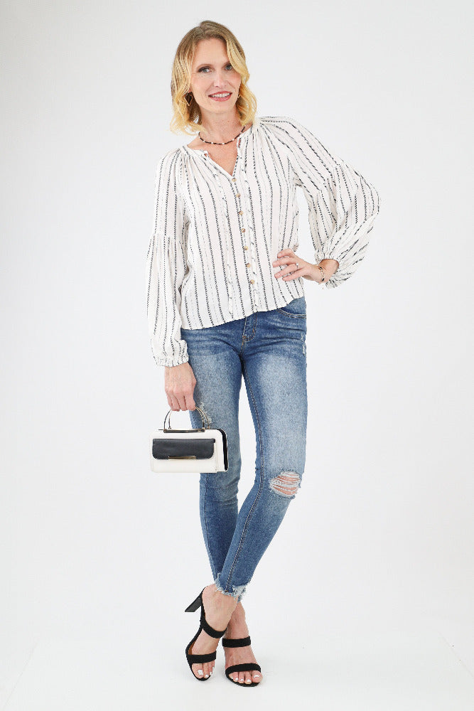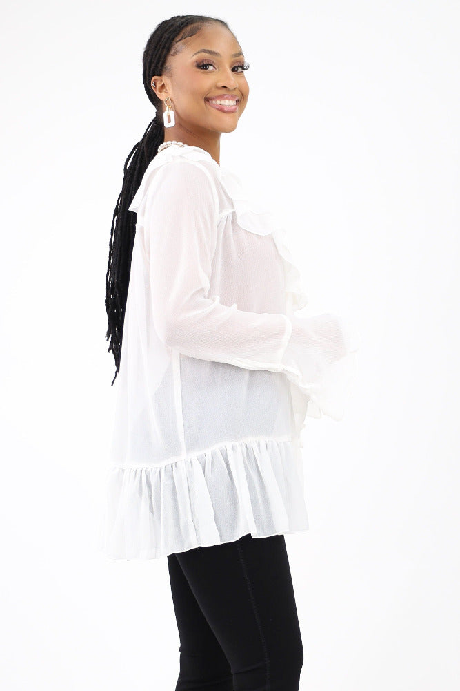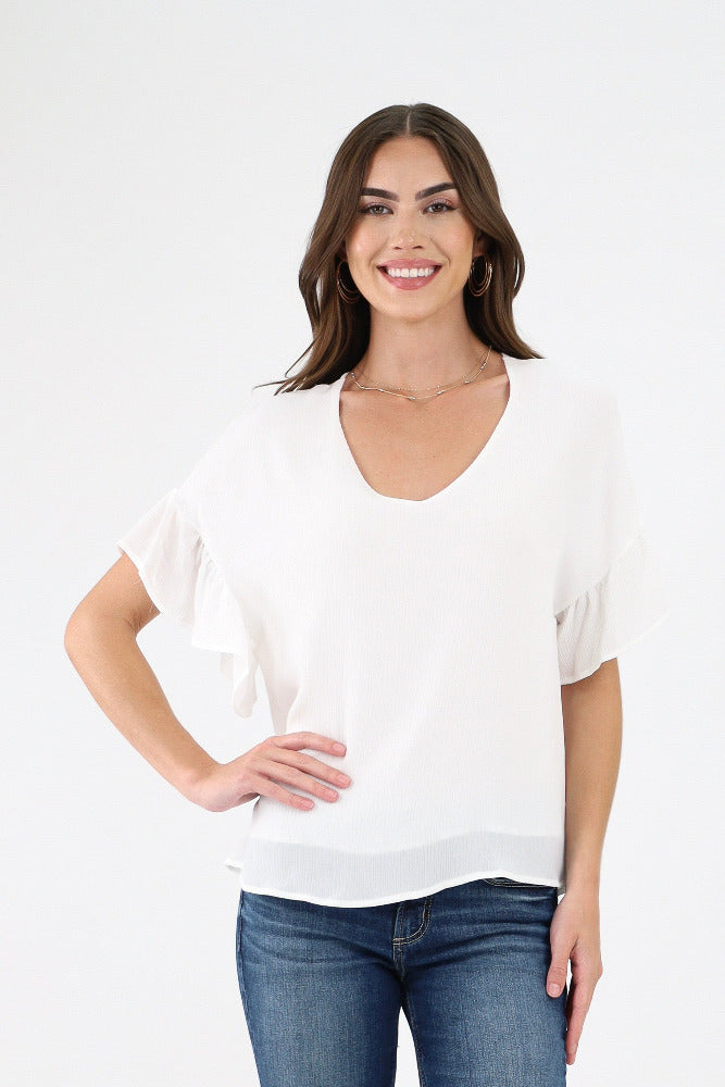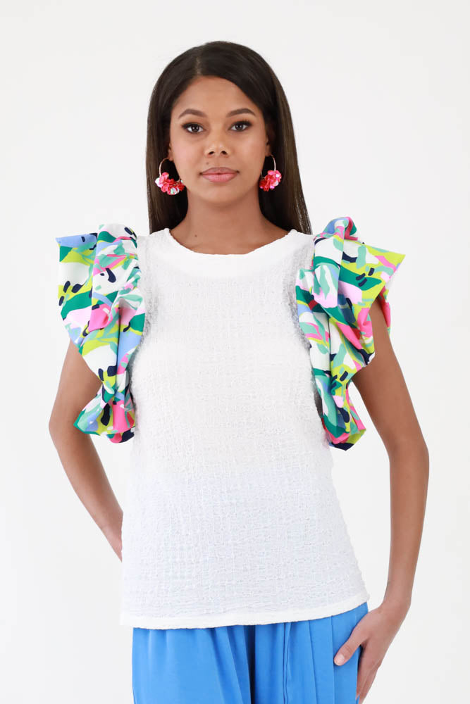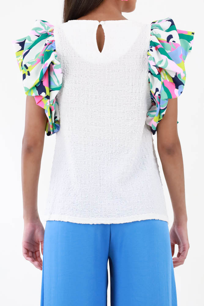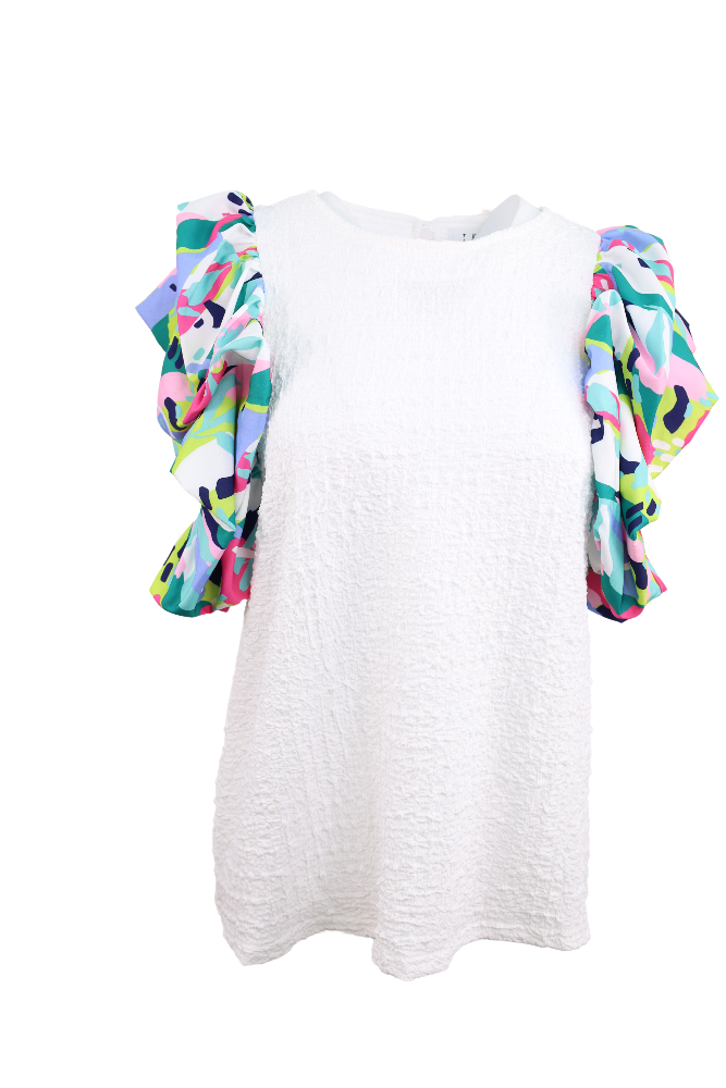 Splash of Color Ruffled Sleeve Top - White