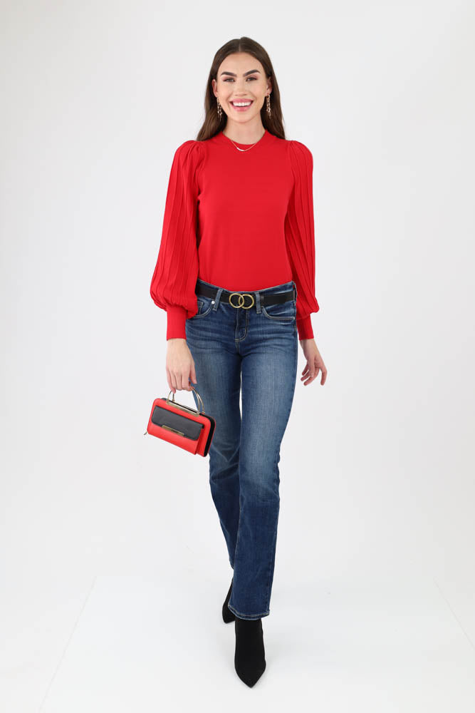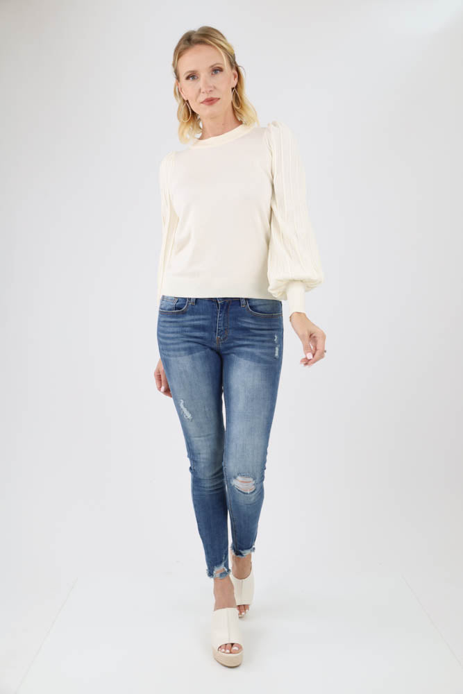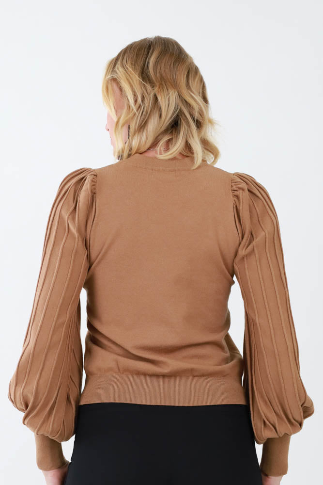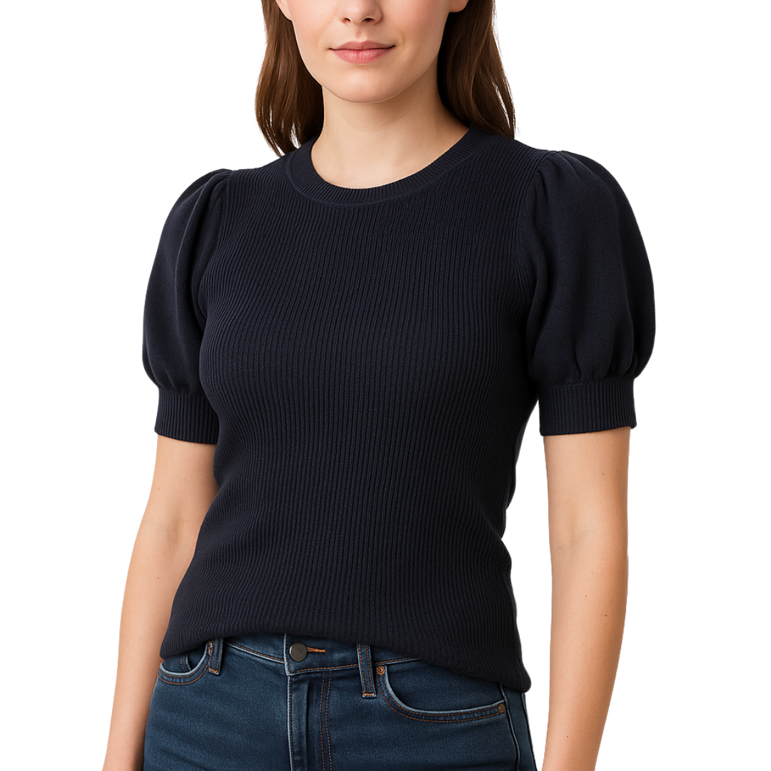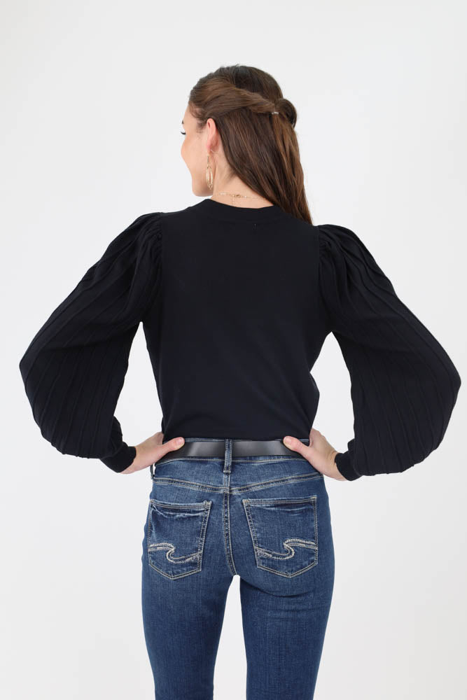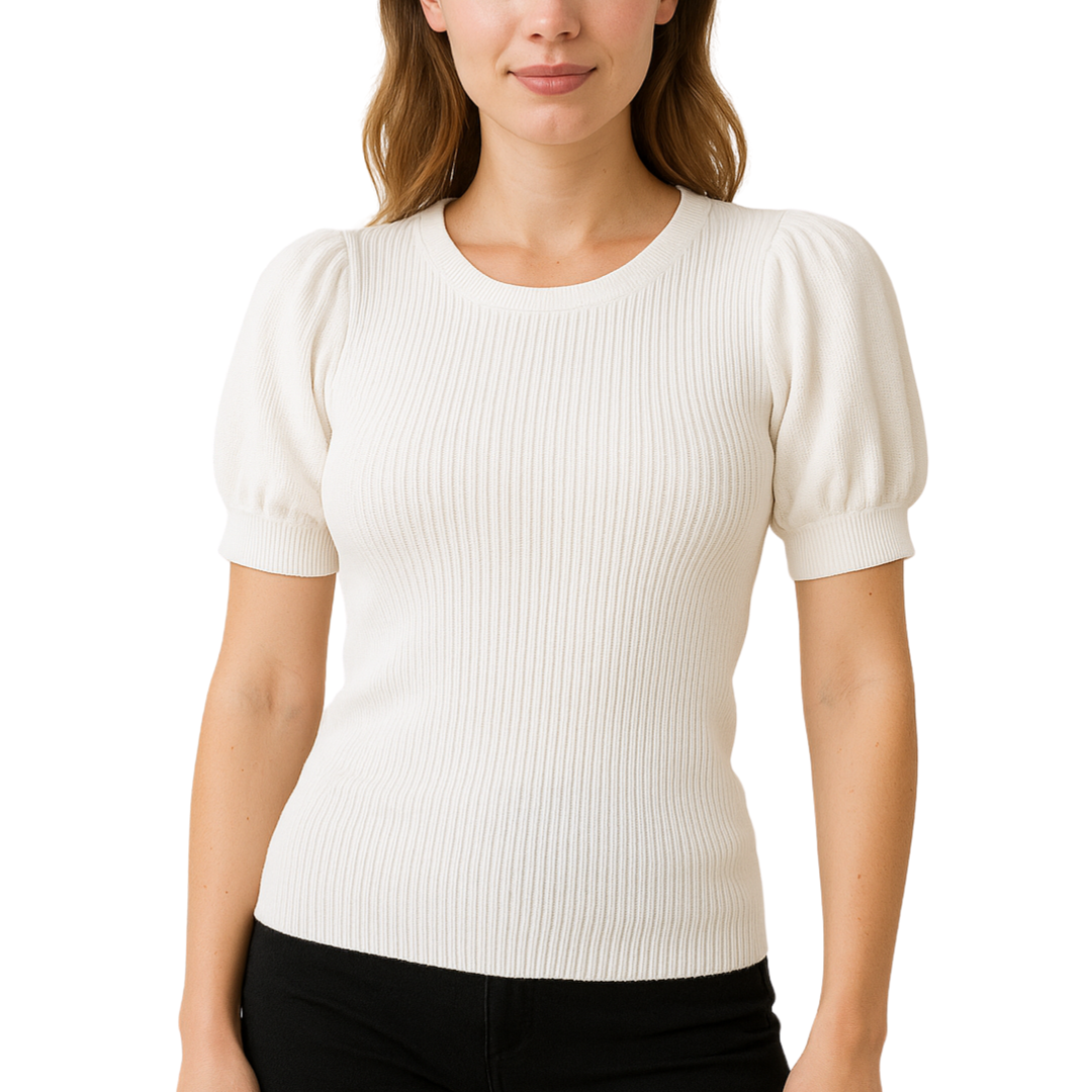 Ribbed Knit Puff Sleeve Top