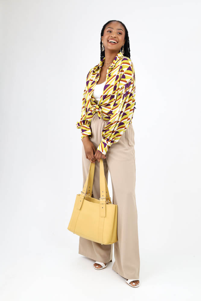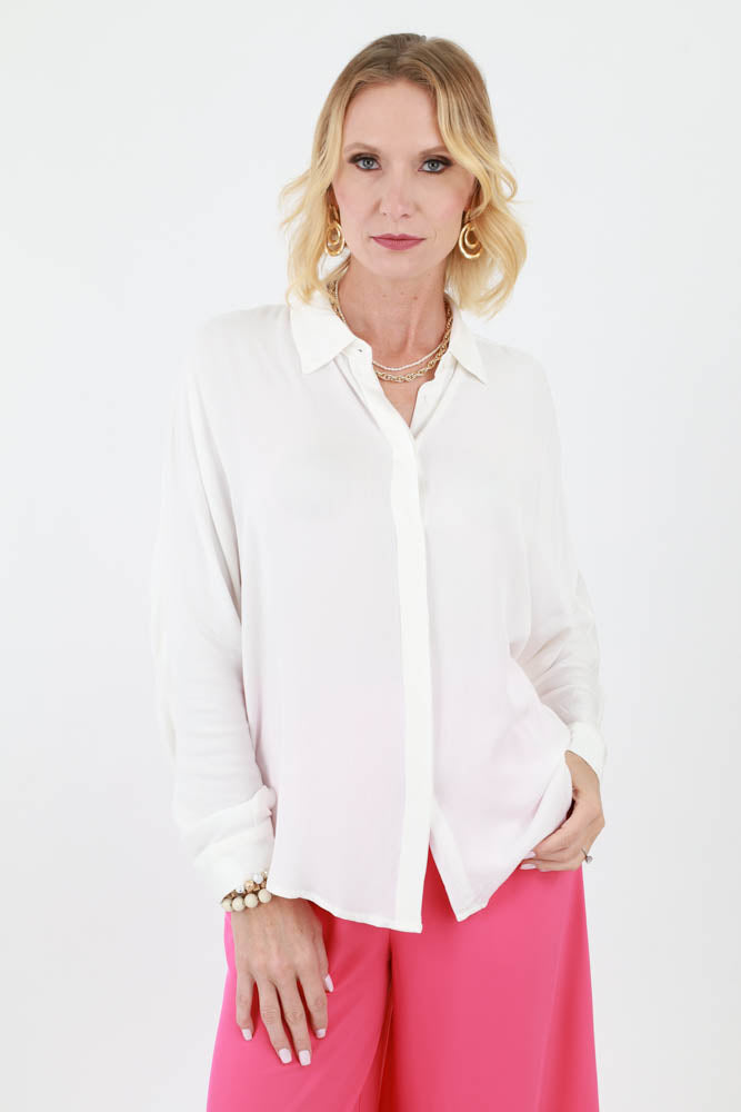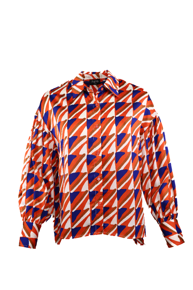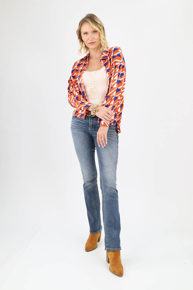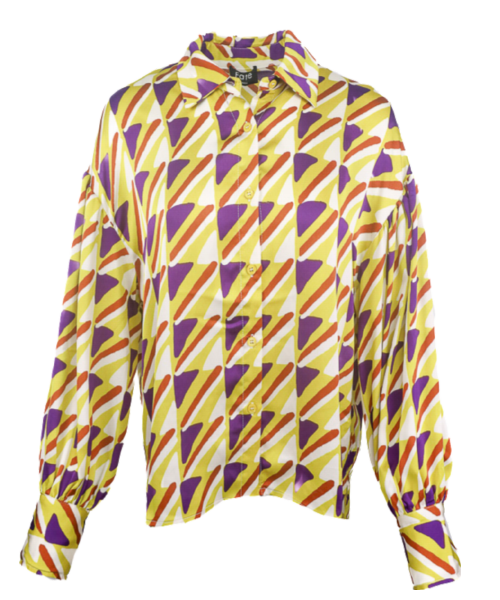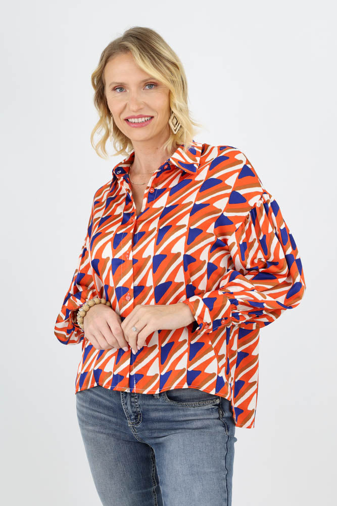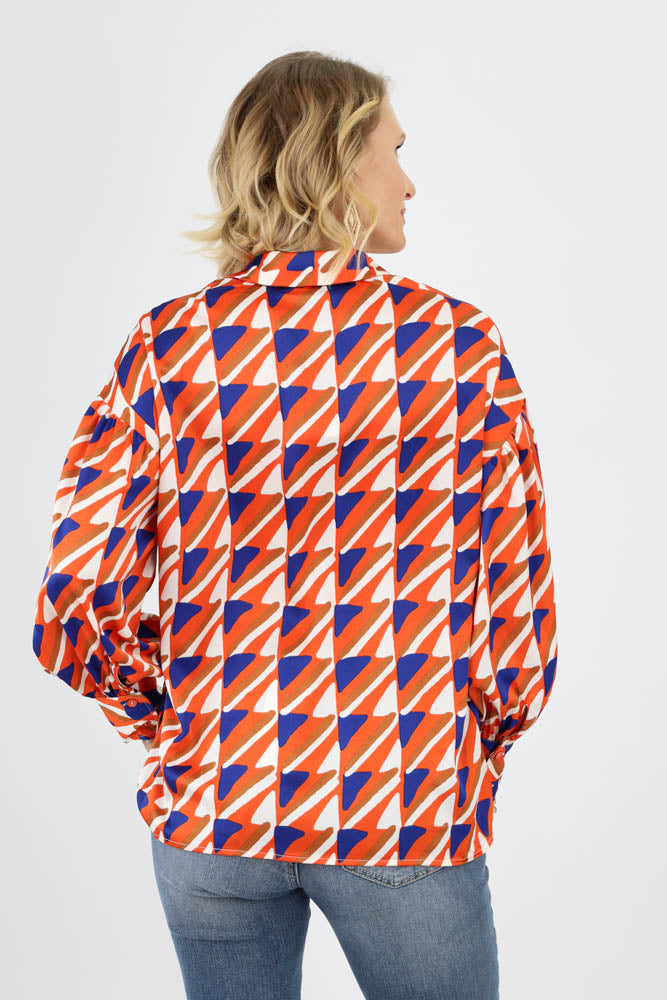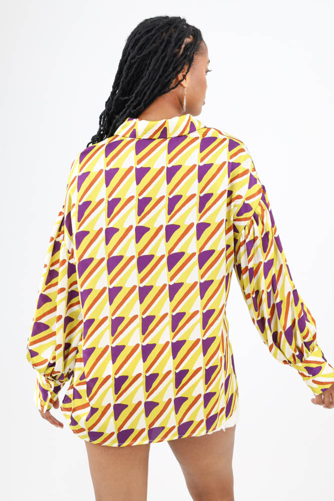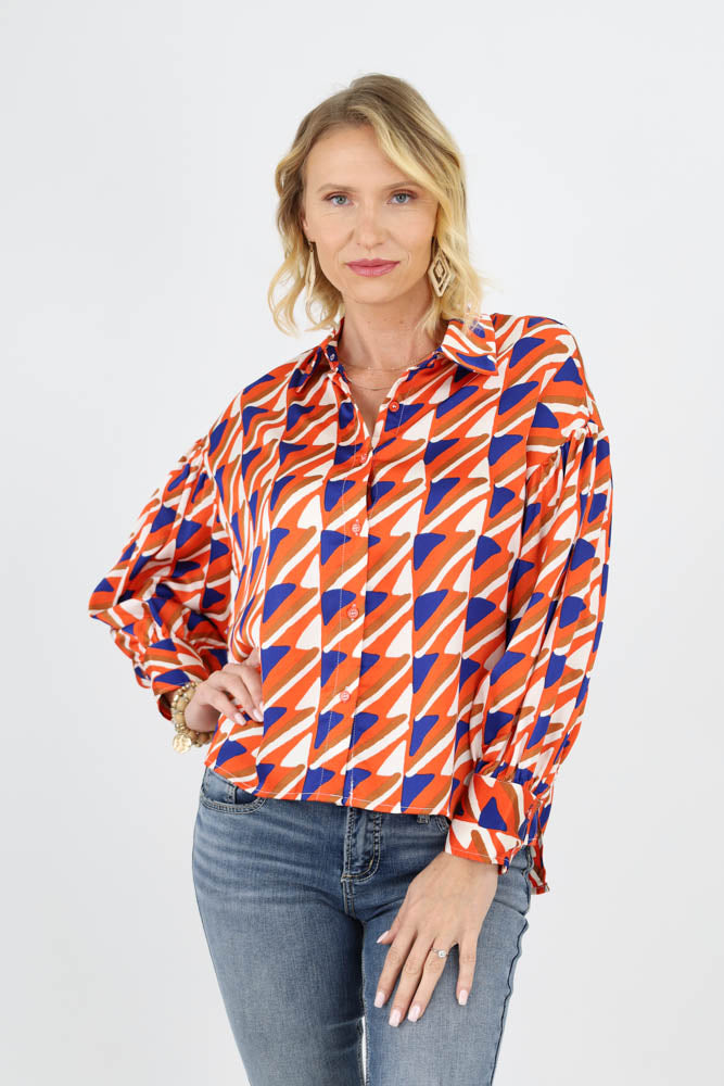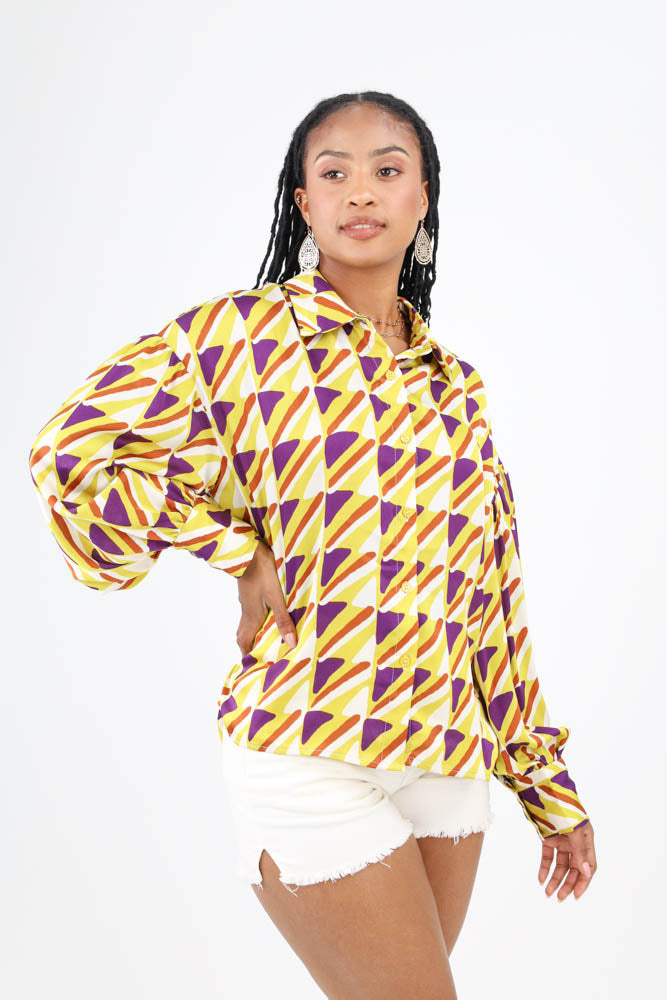 Abstract Print Satin Button Up Top