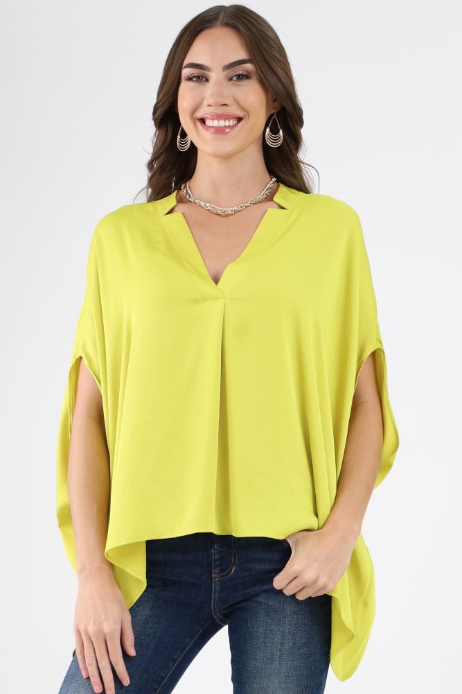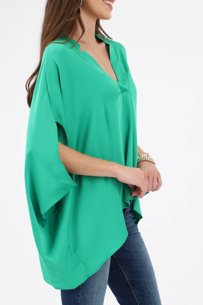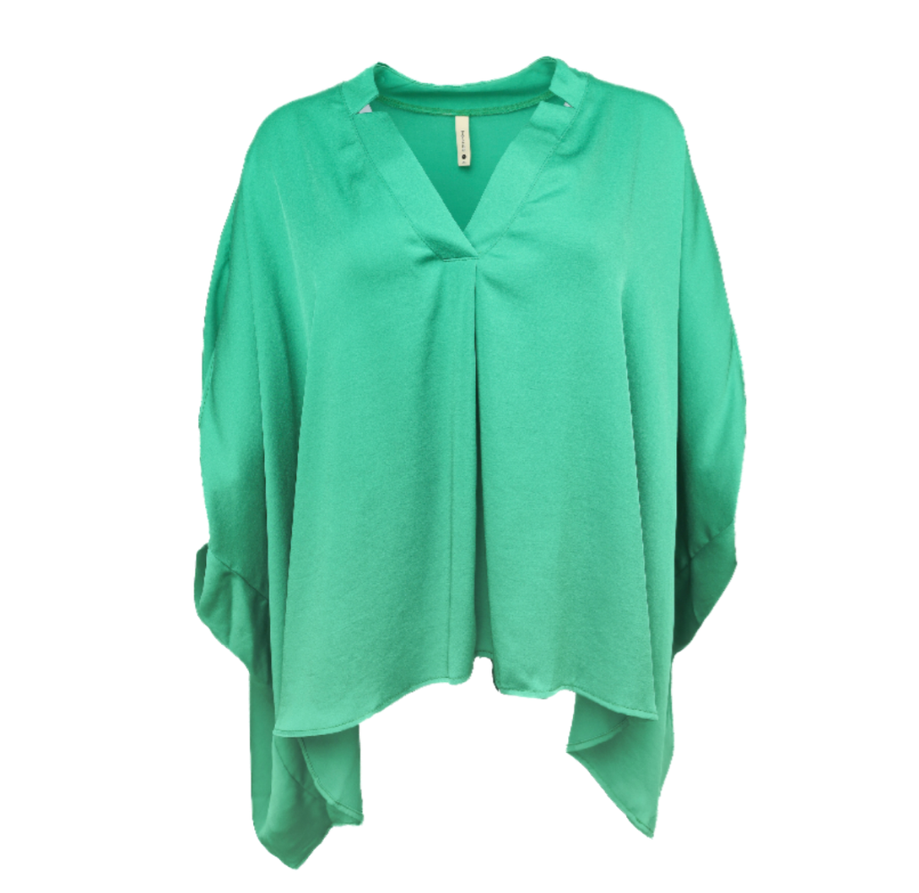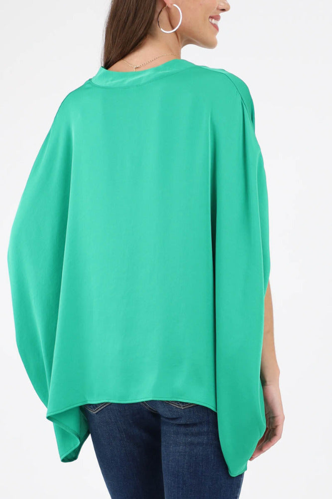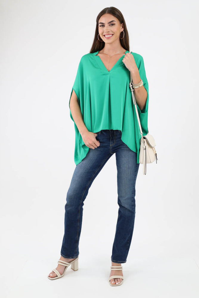 Poly Silk Double Notched Caftan Top - Green