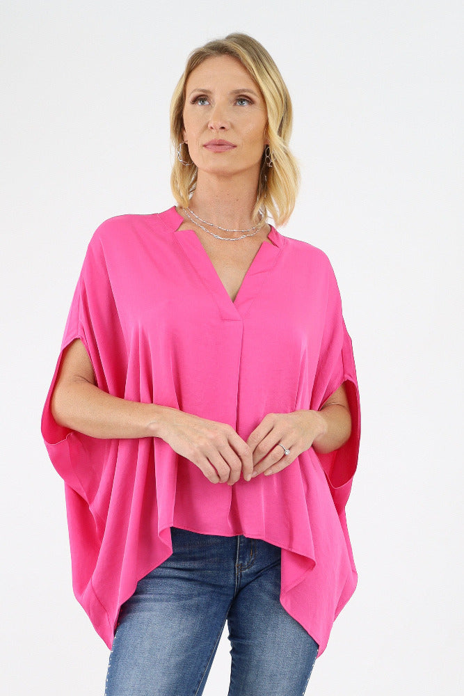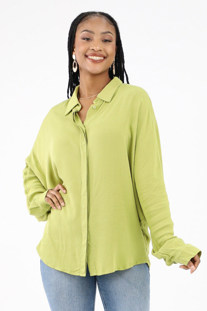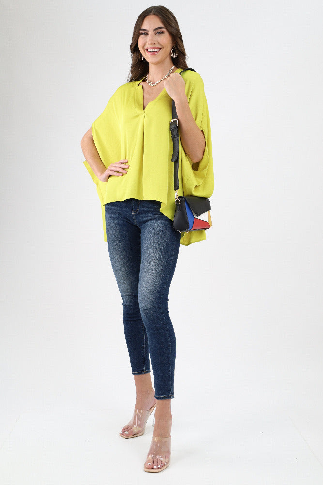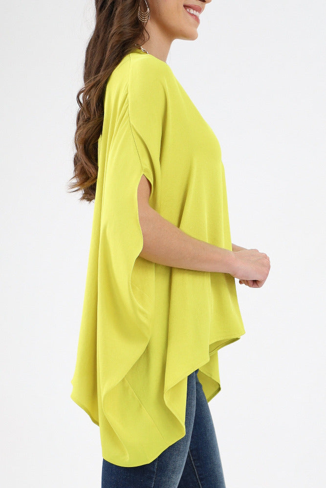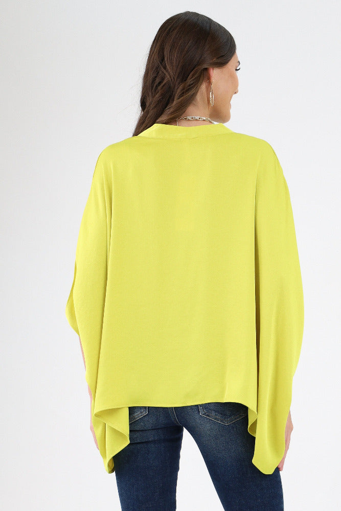 Poly Silk Double Notched Caftan Top - Green