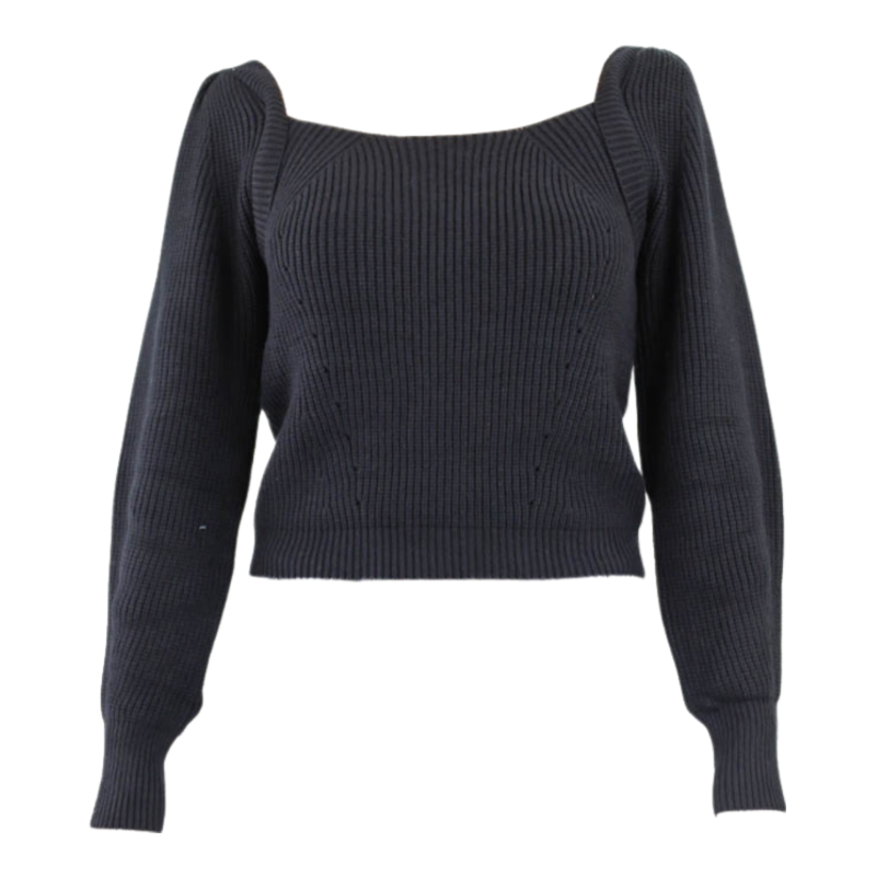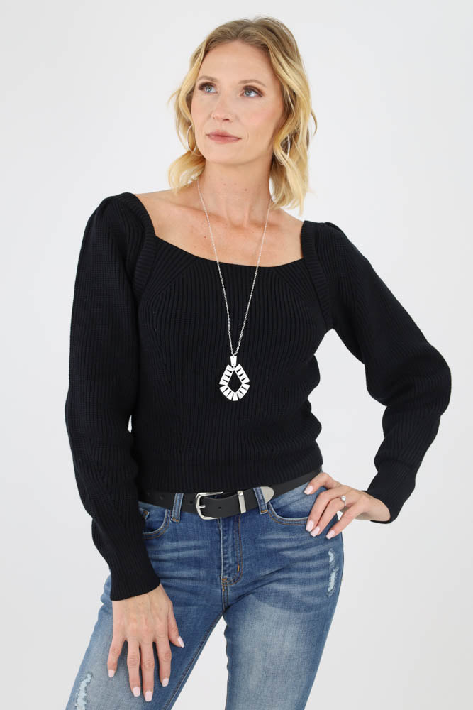 Square Neck Tie Back Sweater -Black