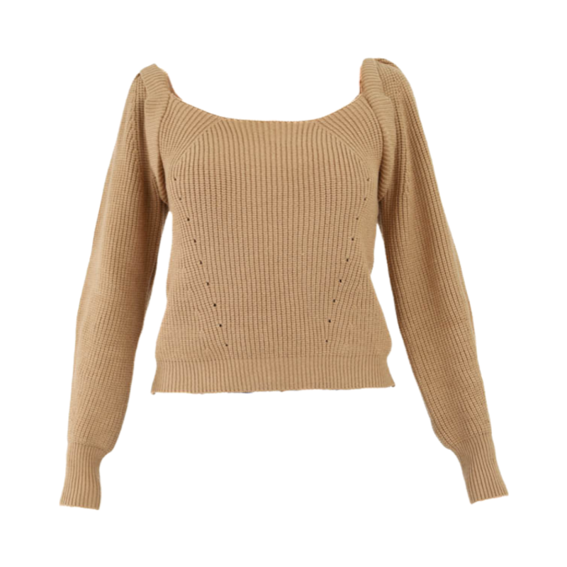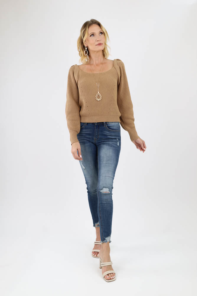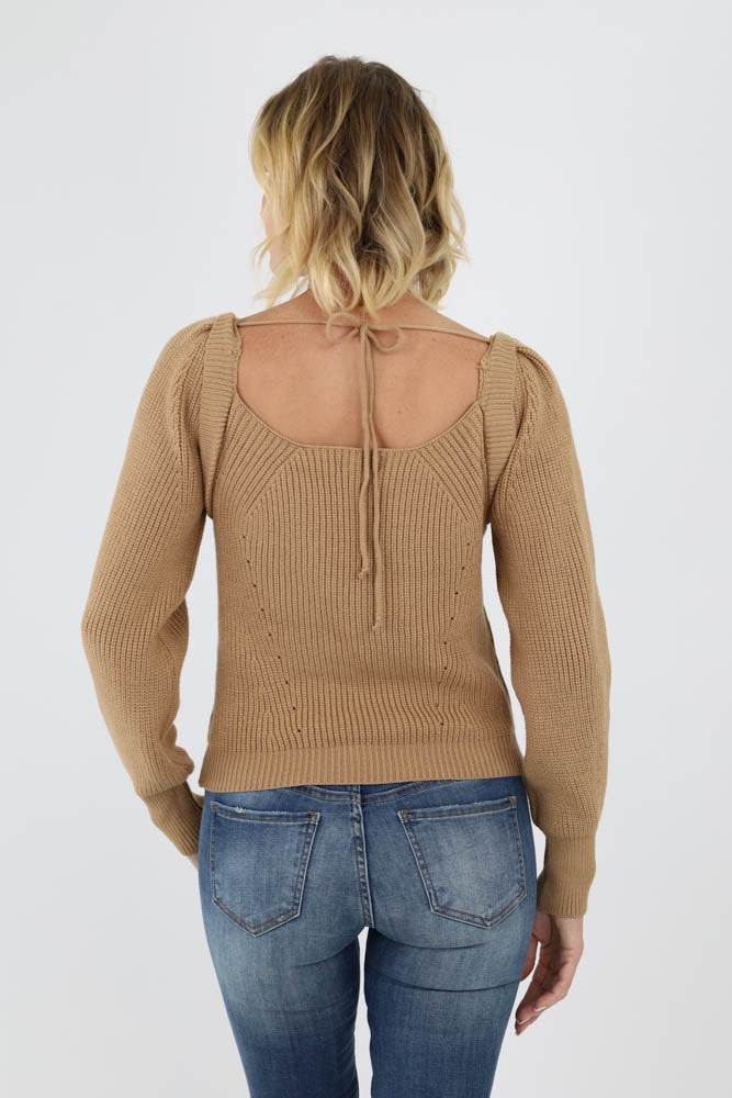 Square Neck Tie Back Sweater -Taupe