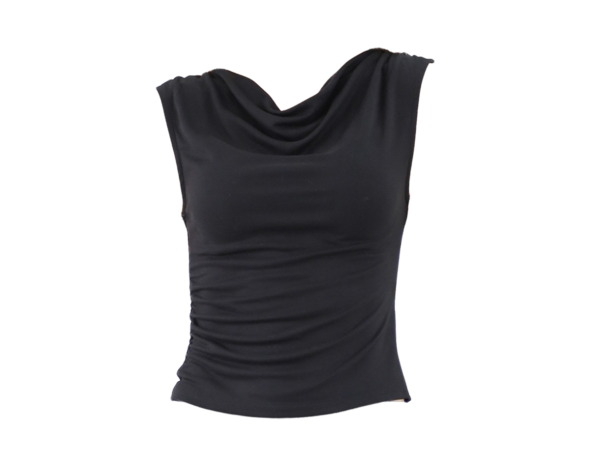 Cowl Neckline Ruched Top - Black