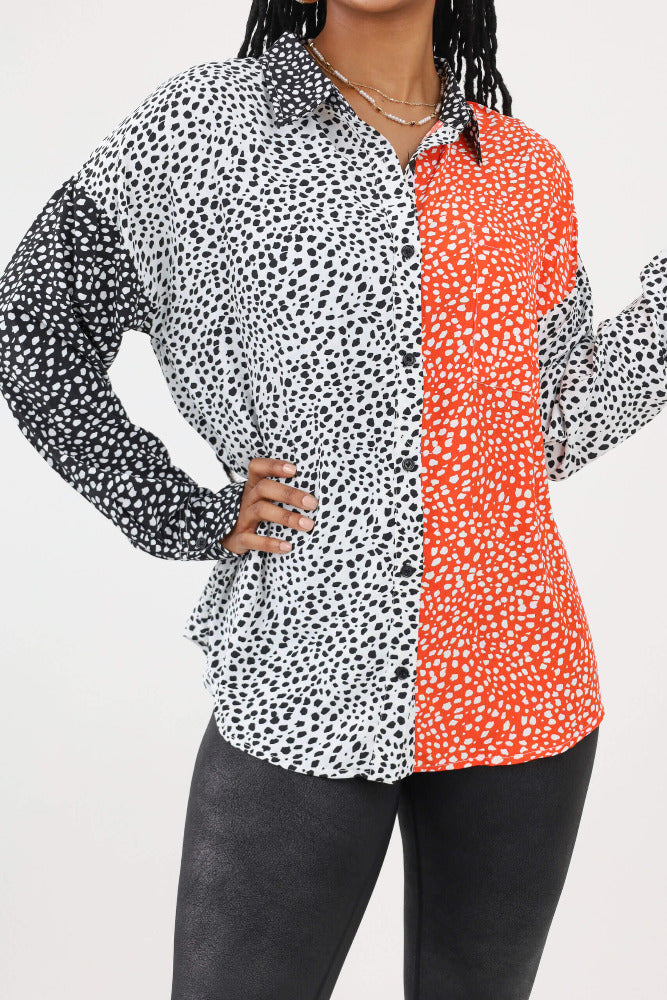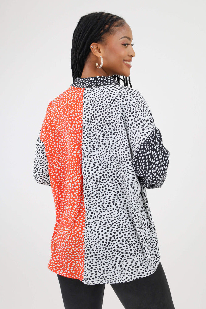 Introducing our Animal Print Color Block Button Down Blouse – it's not just a top, it's a fashion adventure waiting to happen! With its sassy animal print and playful color blocks, this blouse is like a wild party for your wardrobe. Get ready to unleash your inner style beast and turn heads wherever you go because blending in is boring, and standing out is a fashion safari!
