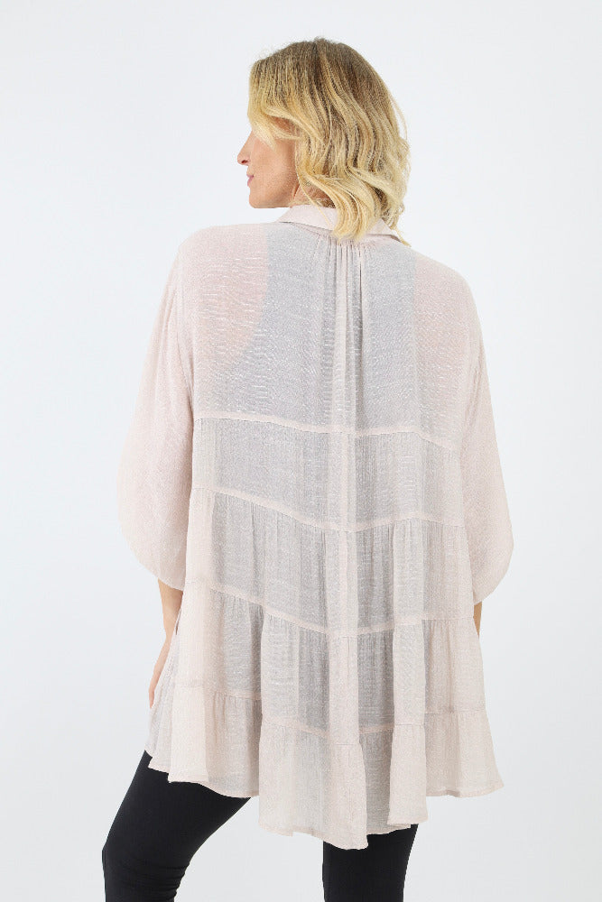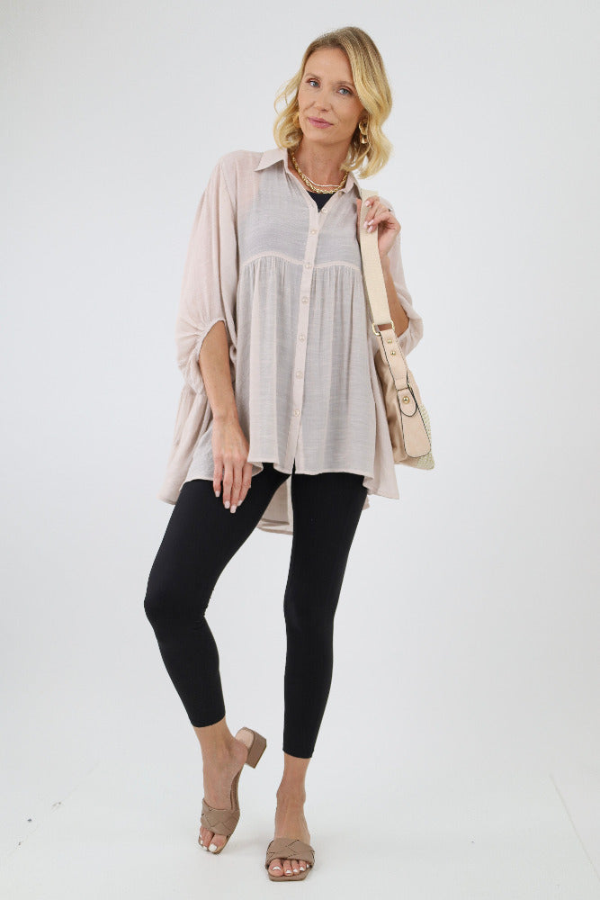 Babydoll Flowy Button Up Top - Tan