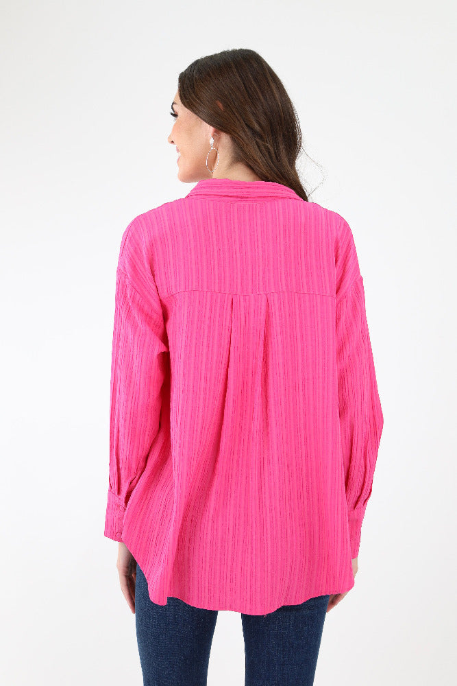 Casual to Classy Long Sleeve Button Blouse - Fuchsia