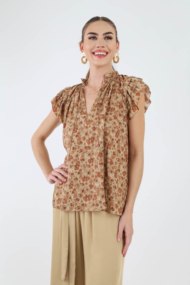 Bloom in style with our Flattering Flower Watercolor Blouse! With its graceful V-neck and delightful ruffle sleeves, this blouse is a masterpiece that's ready to take your fashion to new heights. The organic, natural colors make it a breeze to mix and match with any bottoms in your collection, ensuring you'll always radiate style and stay effortlessly chic!