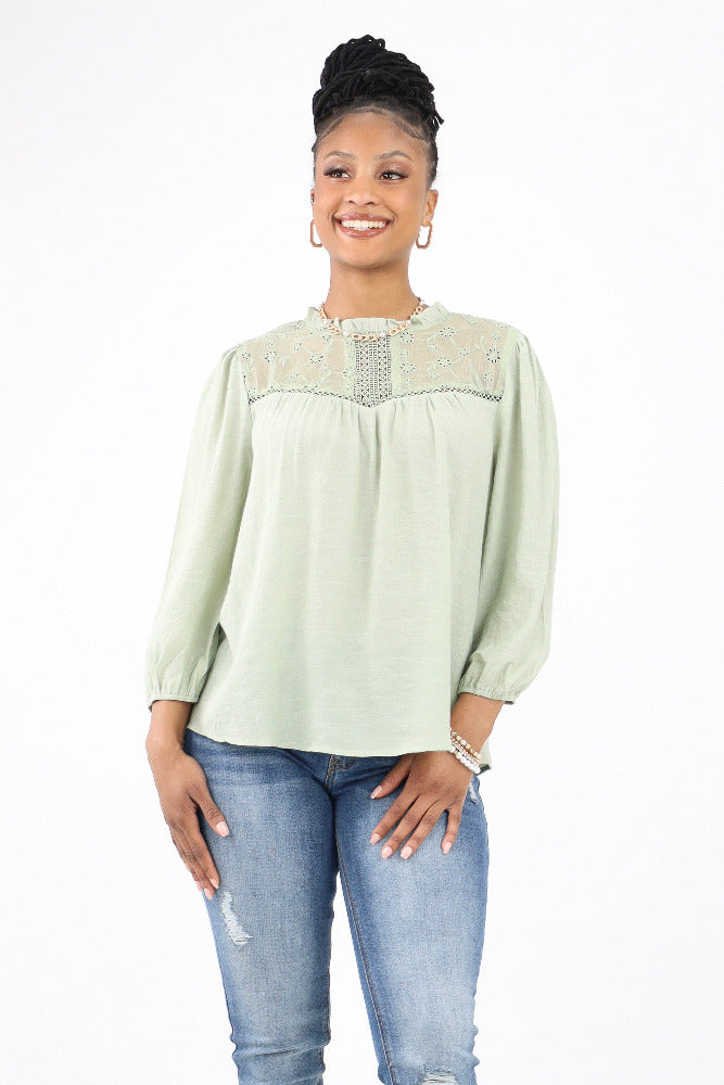 Embrace refined femininity with our Mock Neck Lace Blouse! This chic piece effortlessly blends sophistication and romance with its delicate lace detailing and trendy mock neck. Elevate your look with timeless elegance that's perfect for any occasion.