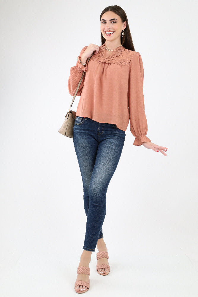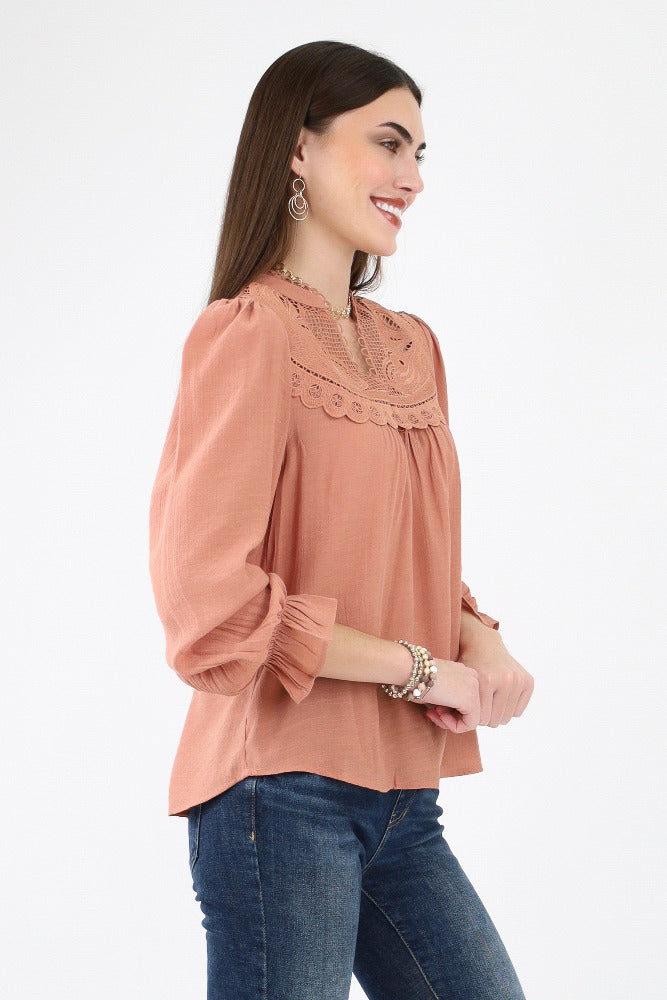 Introducing our Lace Split Neck Top, a perfect blend of elegance and modern style. Crafted with delicate lace detailing and a chic split neckline, this top offers timeless sophistication with a contemporary twist. Versatile enough for both casual outings and special occasions, it's a must-have addition to your wardrobe. Shop now and elevate your look with effortless grace!