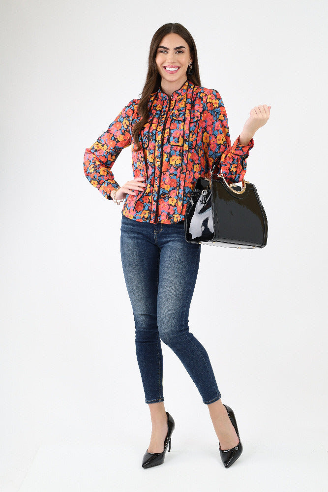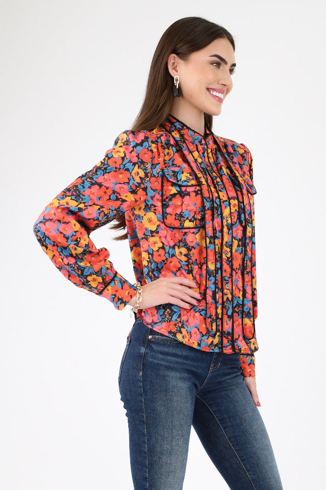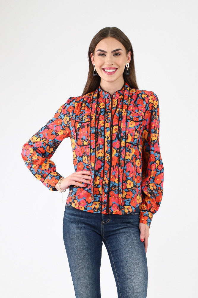 Level up your style game with our playful Bow Tie Neck Blouse featuring sassy contrast piping! This blouse is all about adding a touch of fun to your wardrobe. The chic bow tie neck brings out the flirty vibes, while the contrasting piping keeps it fresh and stylish. Whether you're conquering the workday or hitting the town, this blouse is your go-to for a lively and modern look.