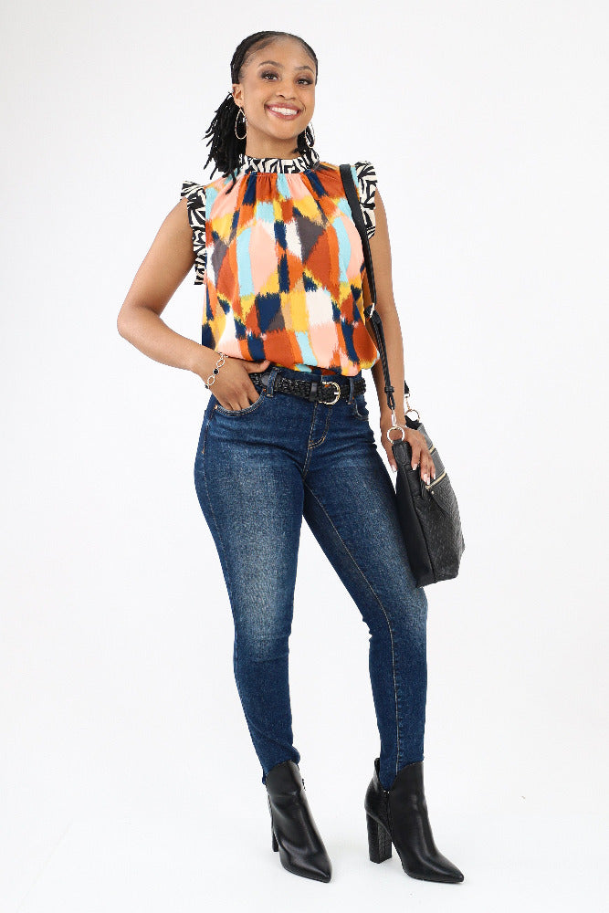 Introducing our Mixed Media Top, a chic fusion of style and versatility. Featuring a unique blend of fabrics, this top adds flair to any ensemble. Perfect for all occasions, it's a must-have staple for your wardrobe. Shop now and elevate your look with effortless sophistication!