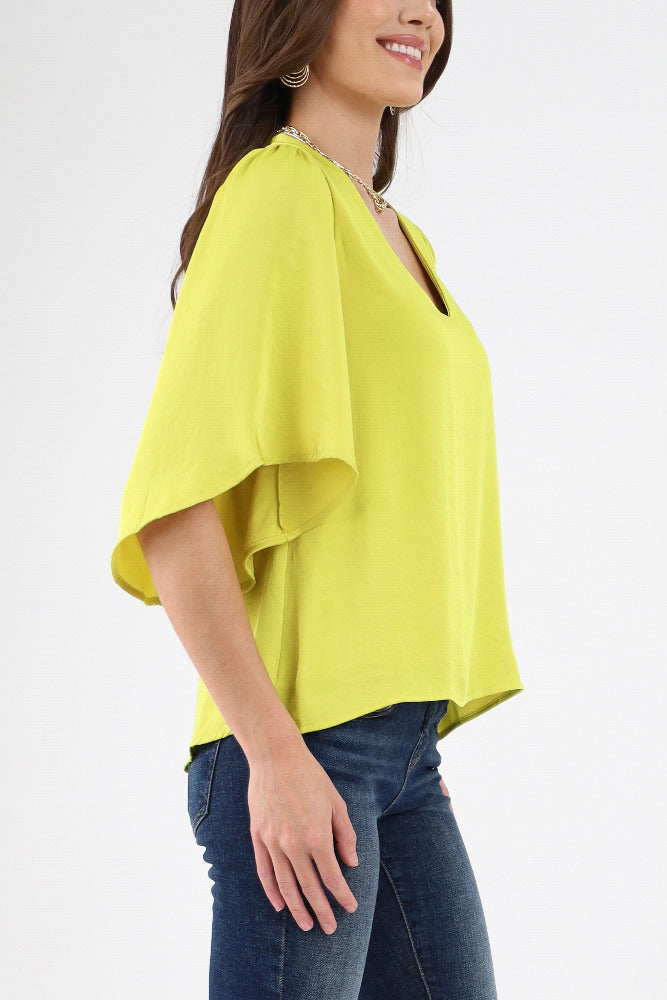 Poly Silk Petal Sleeve Top - Chartruse