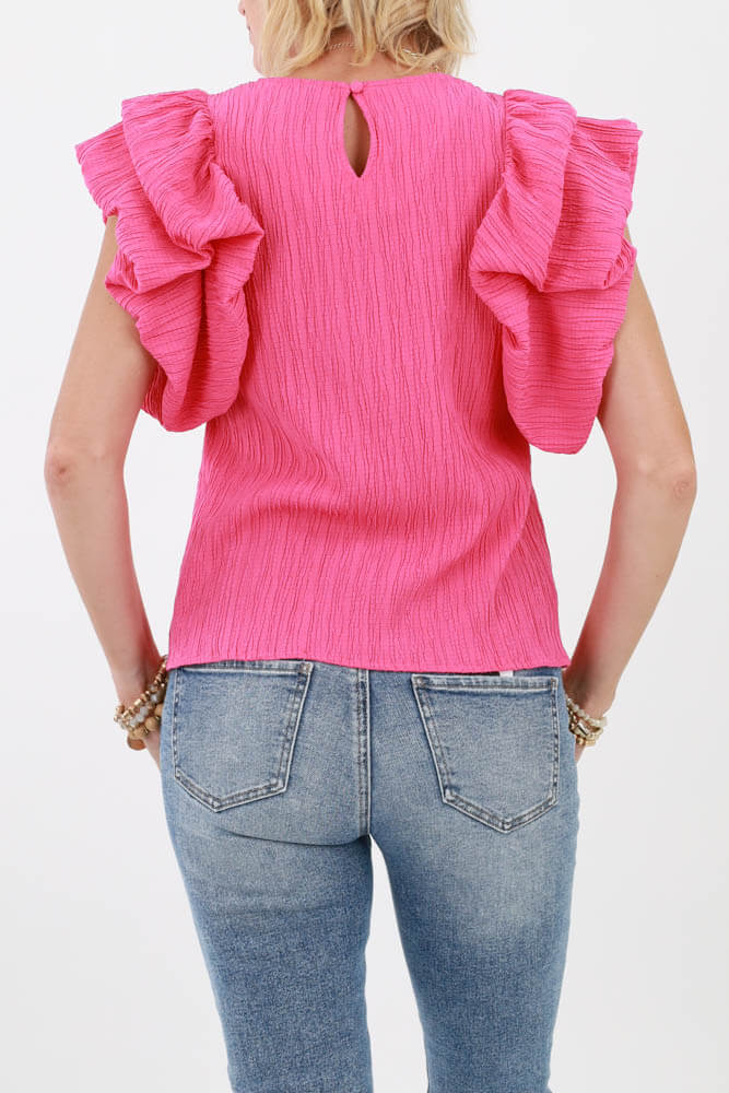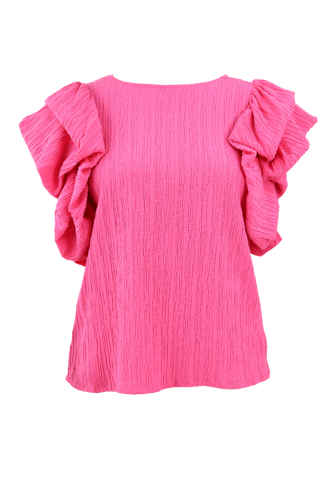 Puff Ruffle Sleeve Textured Top - Pink